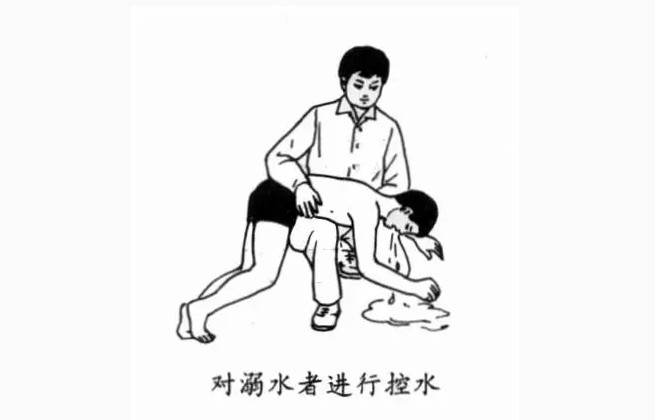2、迅速进行控水。方法是:把溺者放在斜坡地上,使其头向低处俯卧,压其背部,将水控出。如无斜坡,救护者一腿跪地,另一腿屈膝,将患者腹部横置于屈膝的大腿上,头部下垂,按压其背部,将口、鼻、肺部及胃内积水倒出