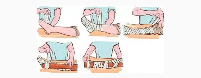 3、妥善固定:不要盲目移动身体,尽快把伤到的肢体用夹板固定住。夹板可用木片或折叠起来的硬纸板制成,放在受伤的肢体下面或侧面,用三角形绷带、皮带或领带缠住夹板和受伤的肢体。避免缠得太紧,避免用细绳子固定,这些都可能阻碍血液循环