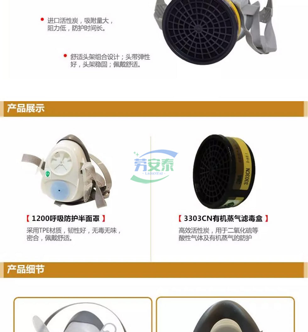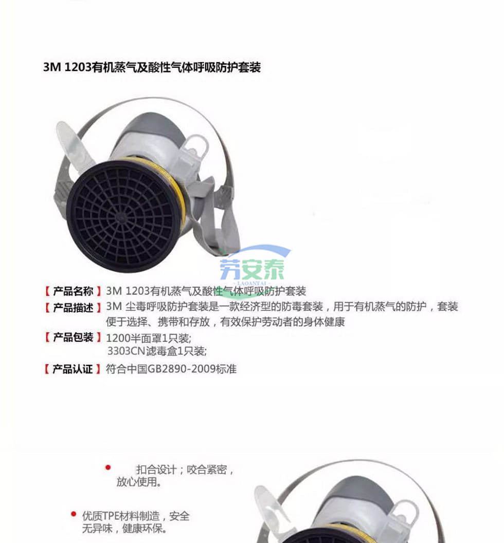 当前位置: 首页 / 个人防护 / 呼吸防护 / 3M 1203防毒面罩有机蒸气酸性气体防护套装 符合GB2890-2009 药品制备呼吸防护