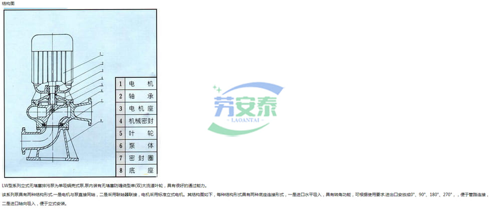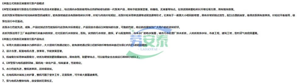 当前位置: 首页 / 水泵系列 / 泵 / LW直立式高效无堵塞排污泵支持定制选型排污泵厂家