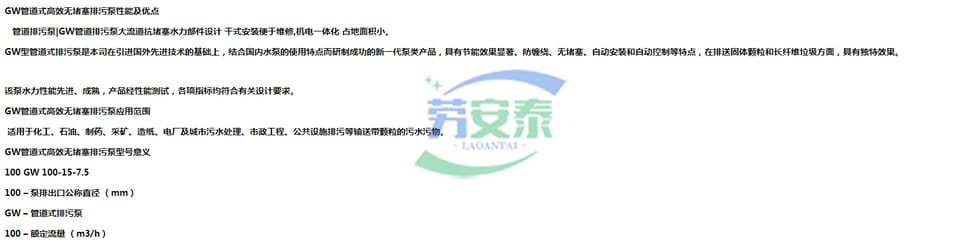 当前位置: 首页 / 水泵系列 / 泵 / GW管道式高效无堵塞排污泵支持定制选型排污泵厂家