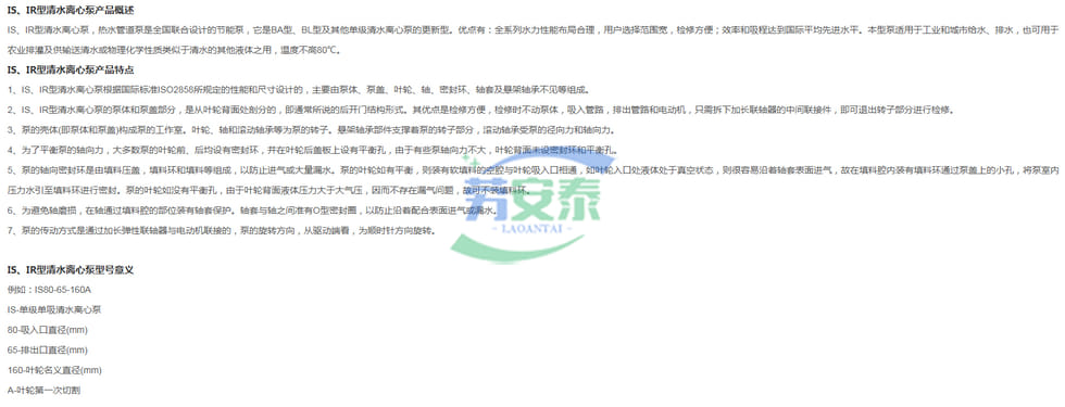 IS IR型清水离心泵支持定制选型IS IR型清水离心泵厂家