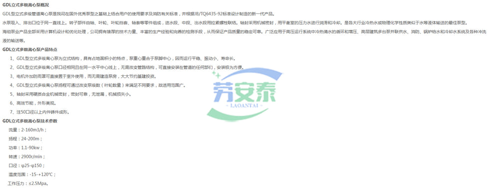 GDL立式多级离心泵支持定制选型GDL立式多级离心泵厂家