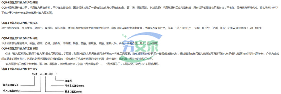 CQB-F型氟塑料磁力泵支持定制选型CQB-F型氟塑料磁力泵厂家