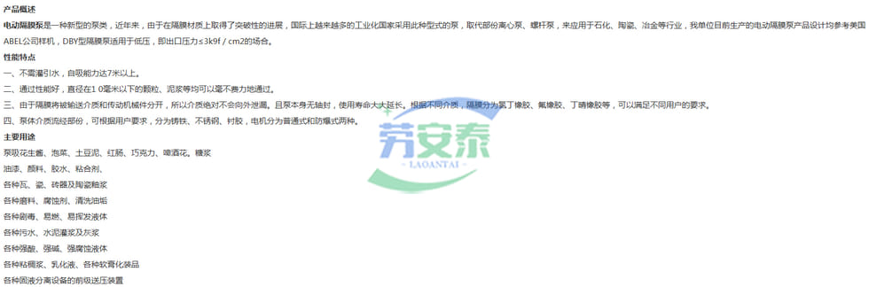 DBY电动隔膜泵支持定制选型DBY电动隔膜泵厂家