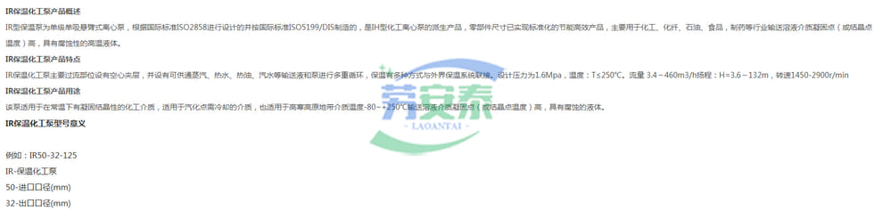 IR保温化工泵支持定制选型IR保温化工泵厂家