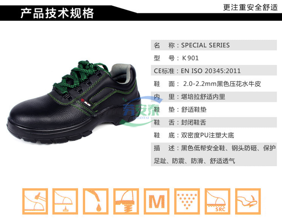 当前位置: 首页 / 个人防护 / 足部防护 / 赛狮K901防砸防静电安全鞋 2.0-2.2mm黑色压花水牛皮低帮工装鞋 透气防臭