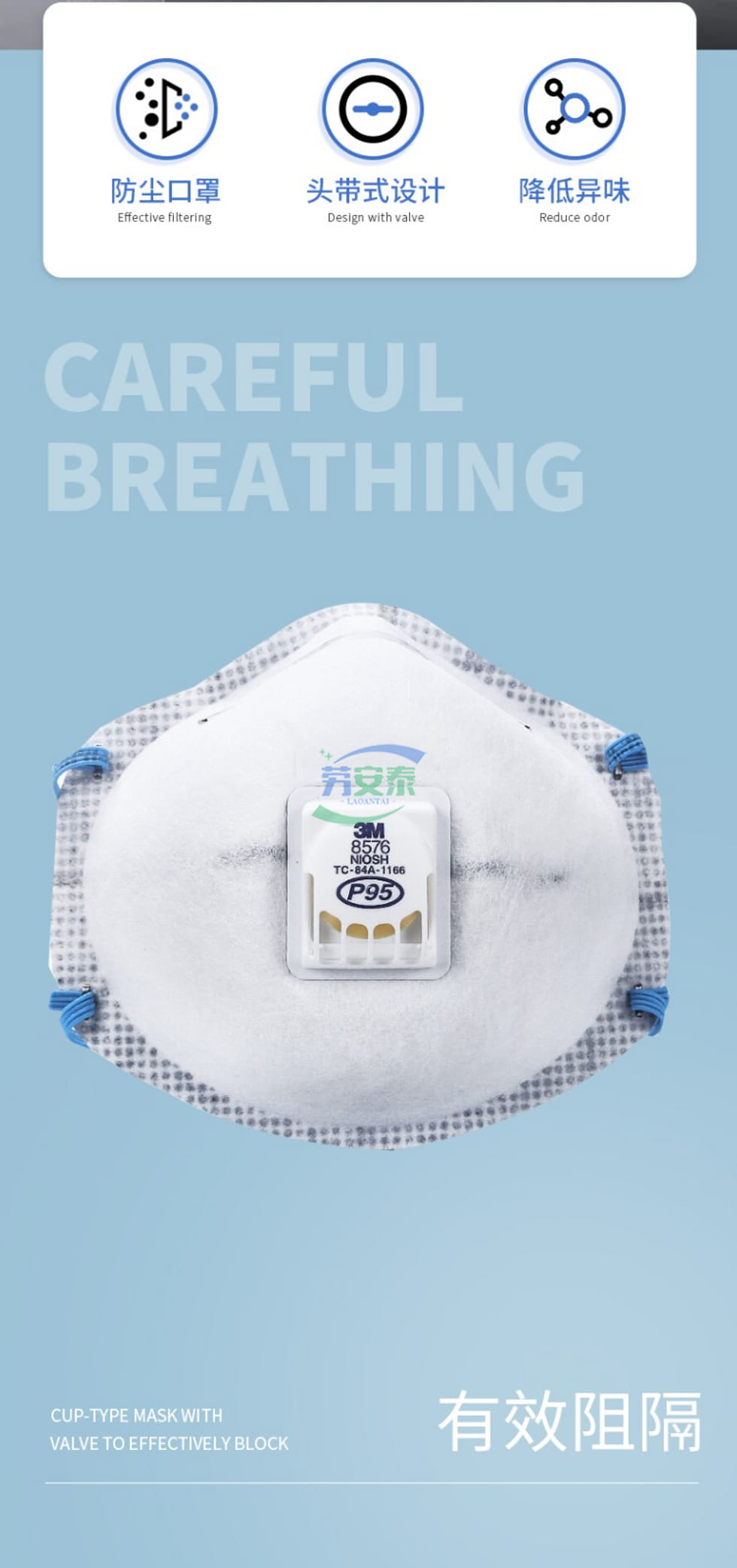 当前位置: 首页 / 个人防护 / 呼吸防护 / 3M 8576CN P95酸性气体防尘口罩 头戴式设计+可塑鼻夹 酸性气体防护专业级(项目型产品)