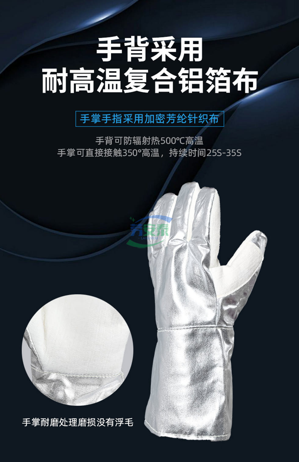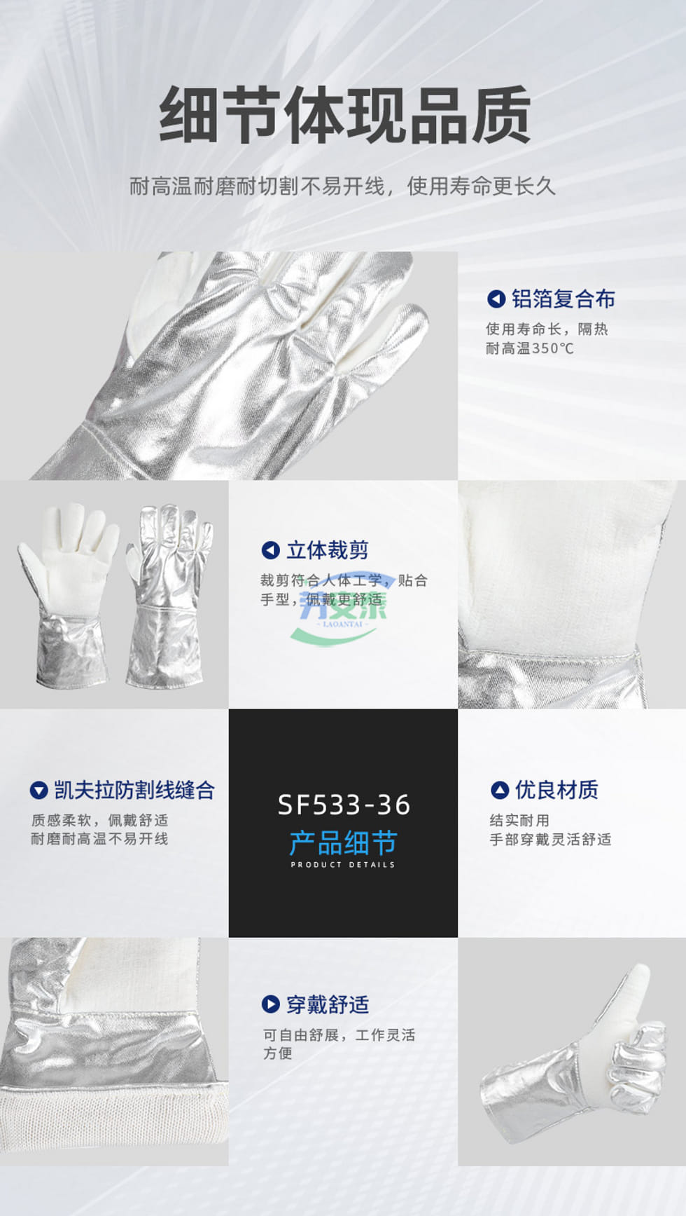 当前位置: 首页 / 个人防护 / 手部防护 / 君御SF533 耐高温手套 350℃芳纶密织手心 500℃镀铝反辐射热 冶炼玻璃铸造36cm