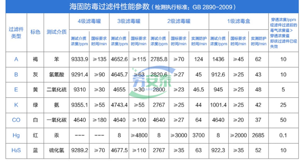 防有机和无机气体及蒸气 酸性气体 氨及有机氨衍生物 硫化氢
