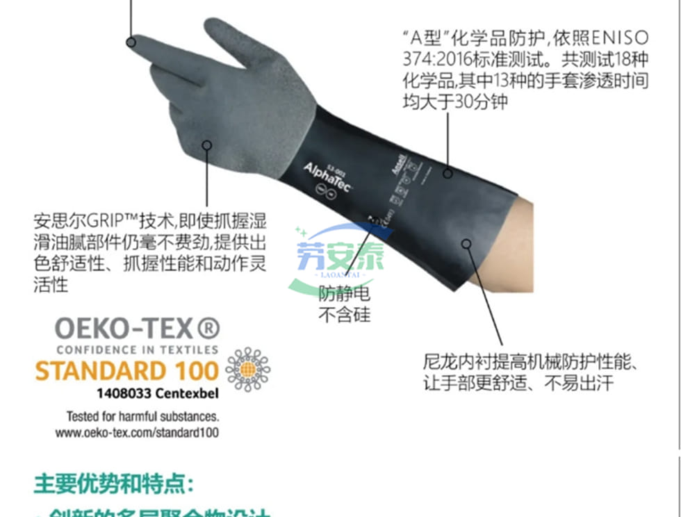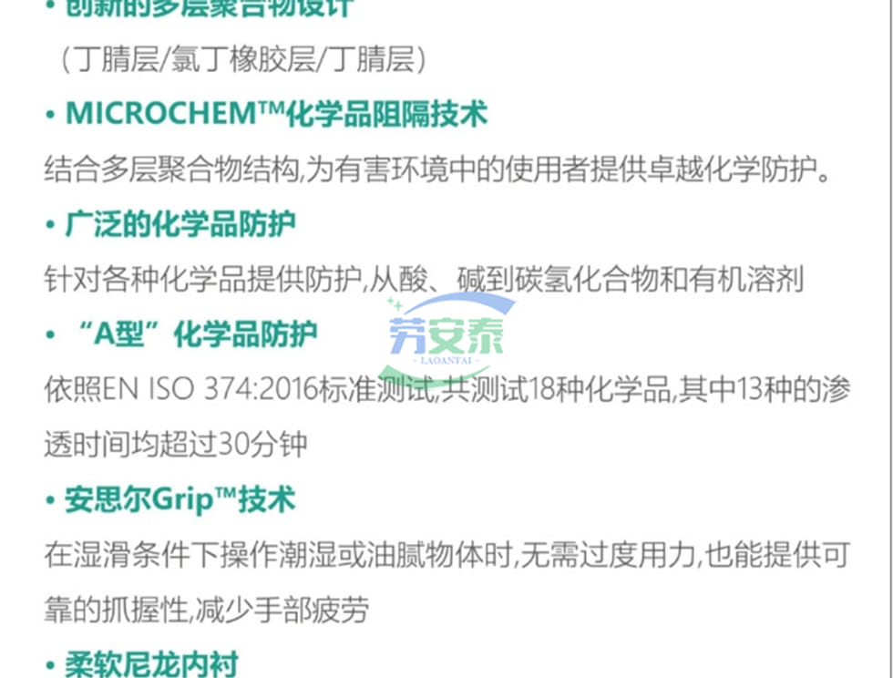 当前位置: 首页 / 个人防护 / 手部防护 / 安思尔Alpha Tec 53001丁腈氯丁橡胶三层复合防化手套 耐酸碱溶剂 防滑GRIP技术