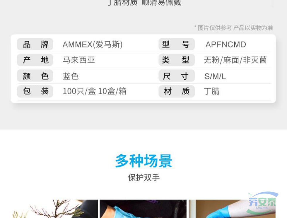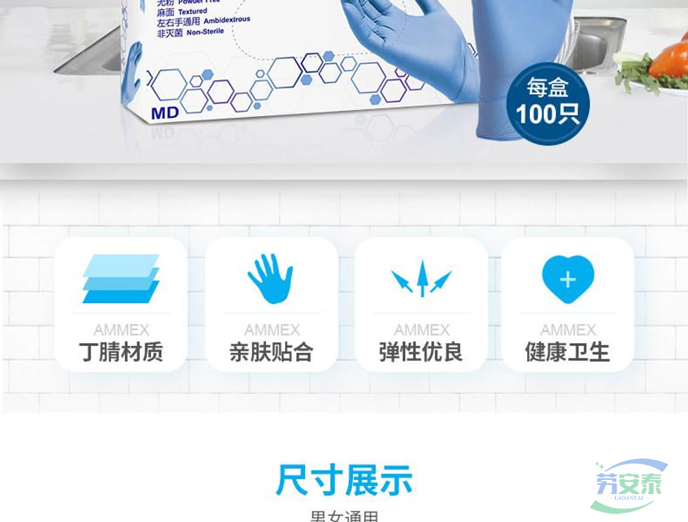 爱马斯医用丁腈手套APFNCMD48100 防过敏麻面指尖 左右手通用