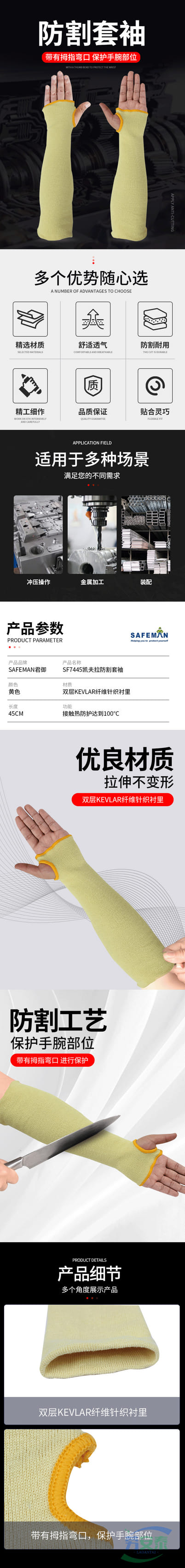 当前位置: 首页 / 个人防护 / 手部防护 / 君御SF7445凯夫拉防割套袖45cm双层Kevlar纤维 100℃耐热护腕 玻璃金属加工防护臂袖