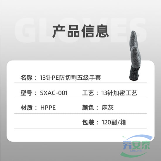 绥禧防切割手套 HPPE 灰色5级防切割手套