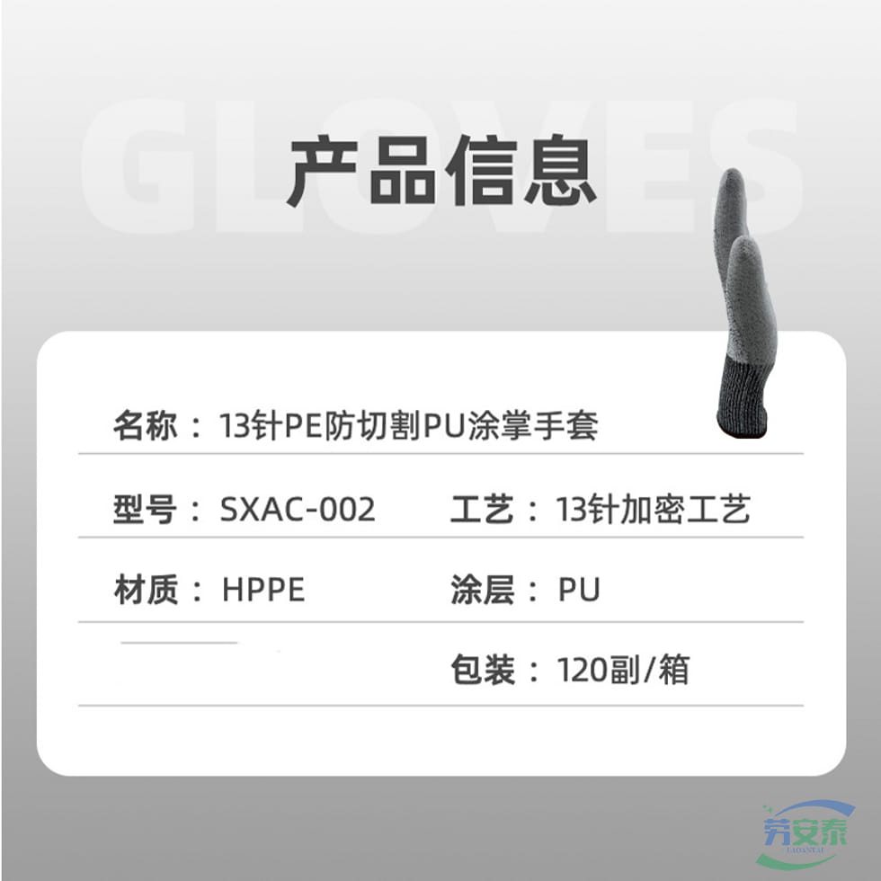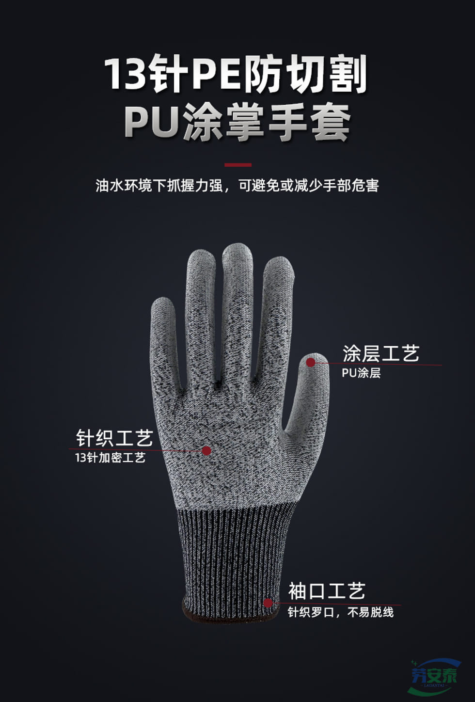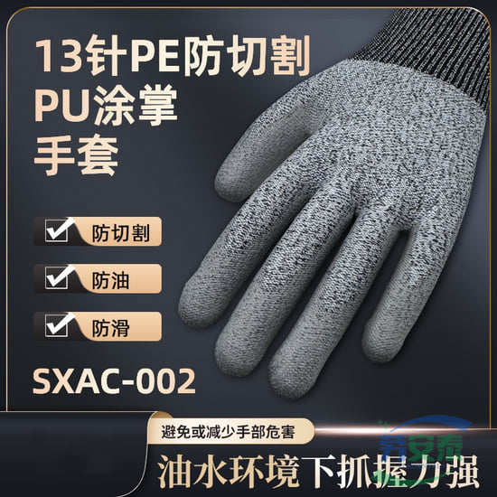 绥禧 13针HPPE防切割 PU涂层手套 防切割防油又防滑 独立包装 1副