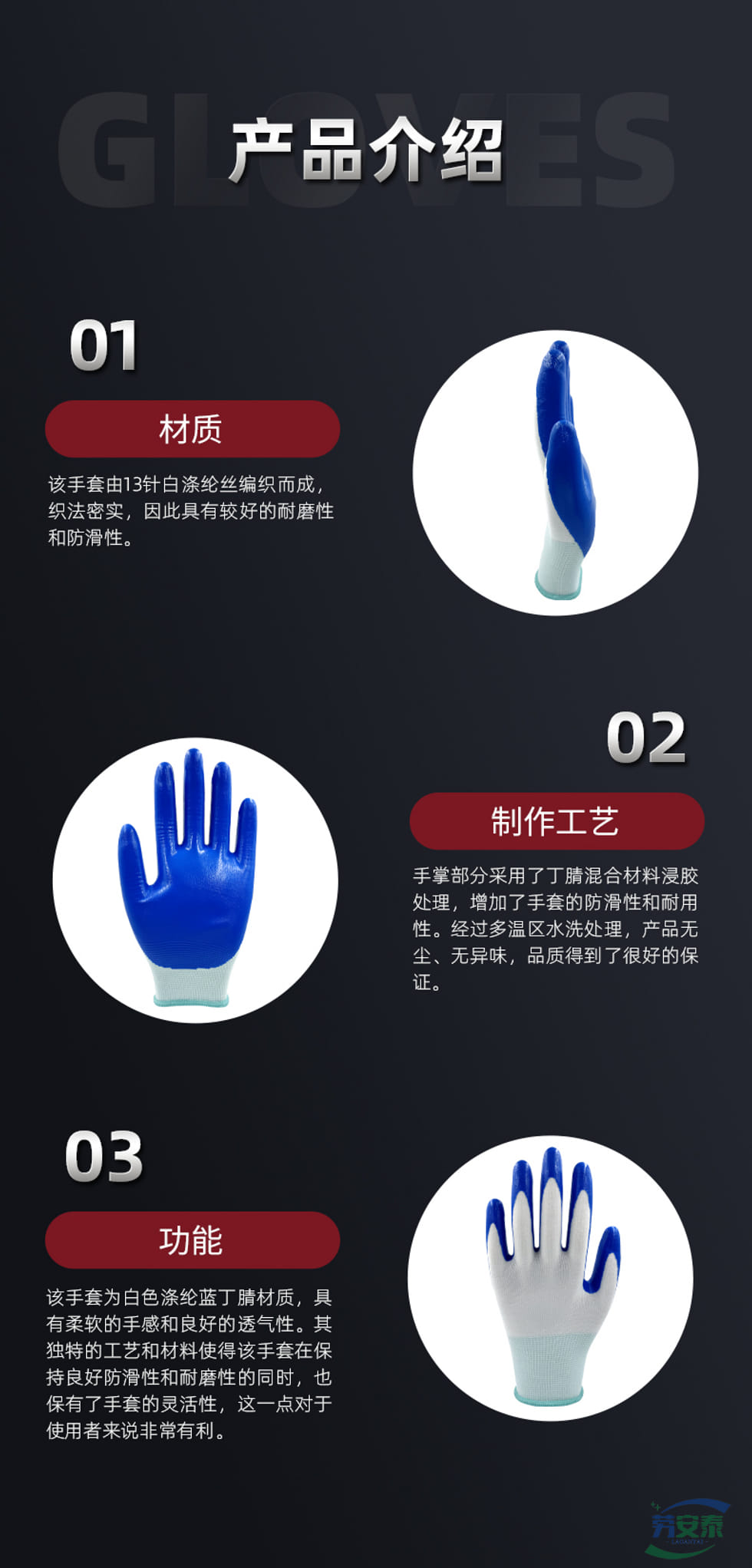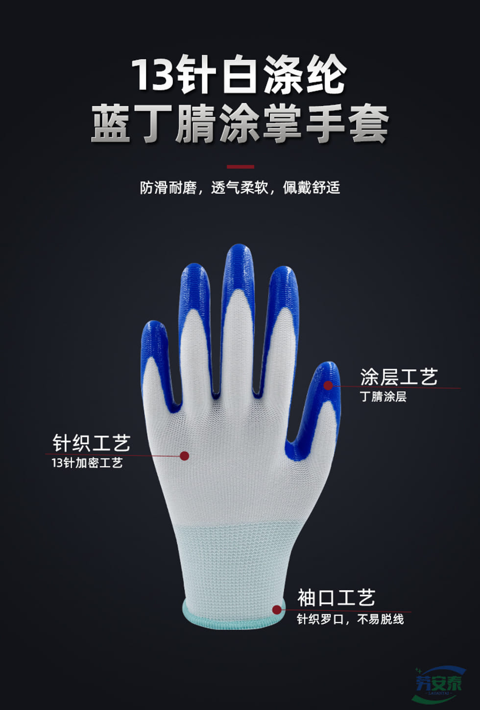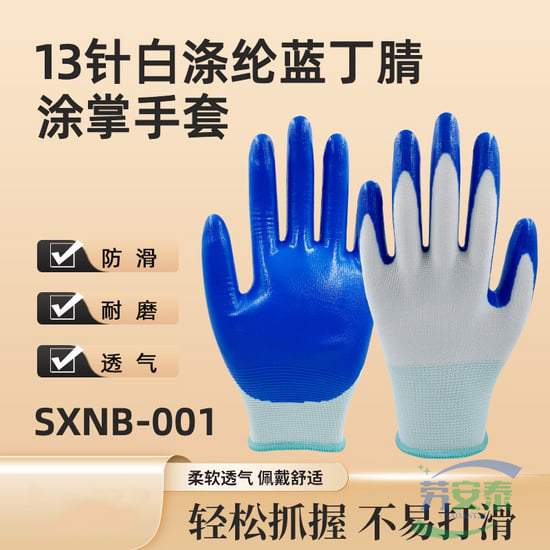 绥禧13针白蓝丁腈涂层手套 12双/包