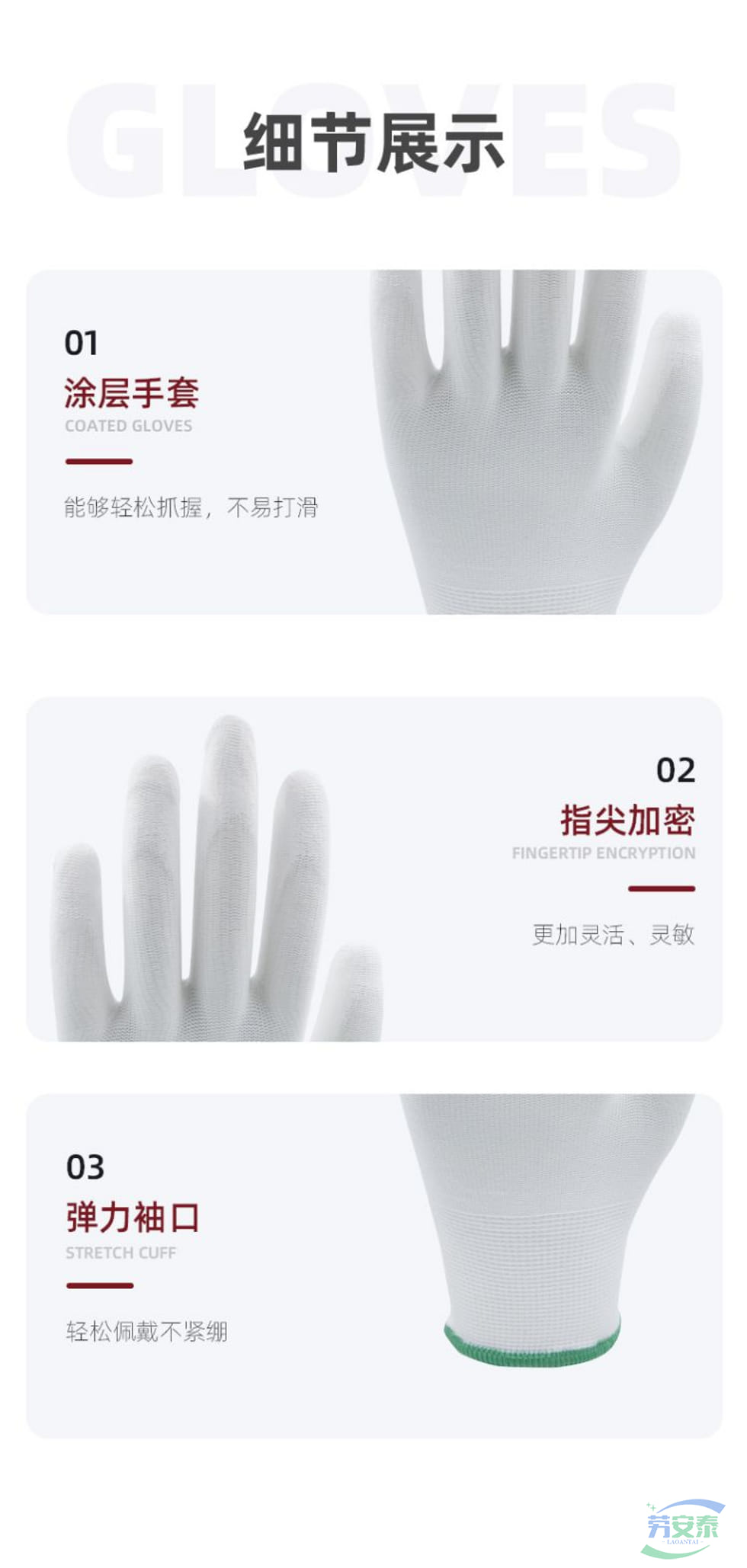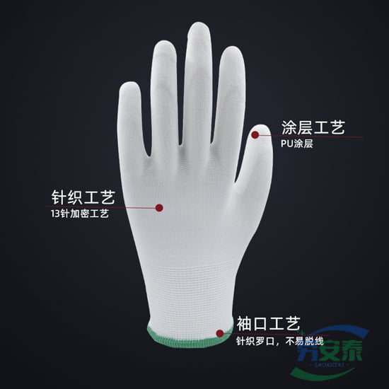 绥禧 13针白涤纶白PU涂层手套