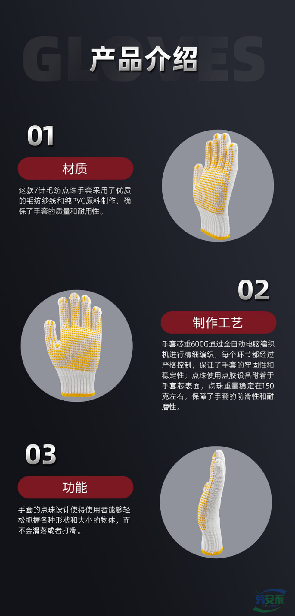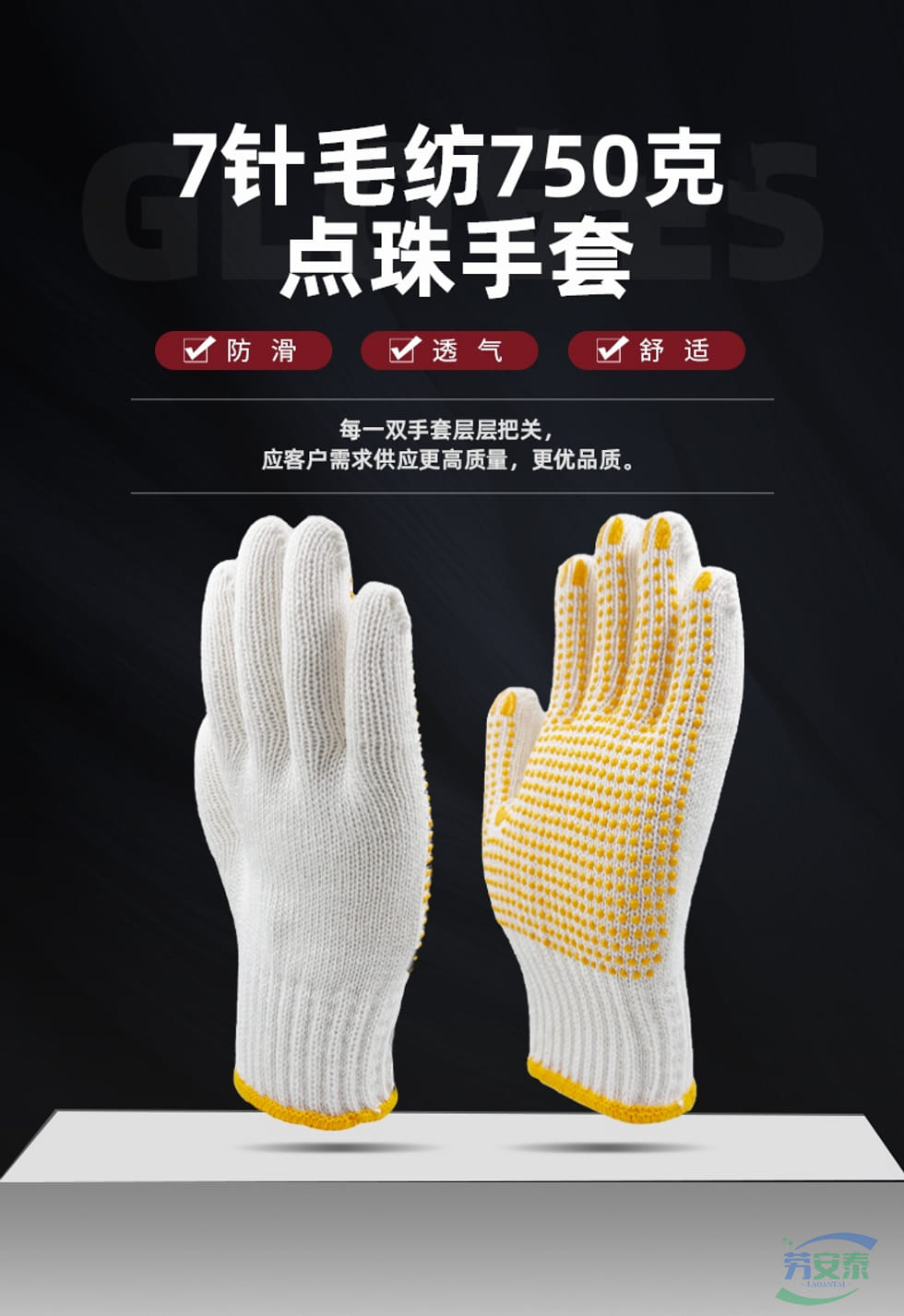 绥禧 点珠手套 750克点珠手套 加厚 白色