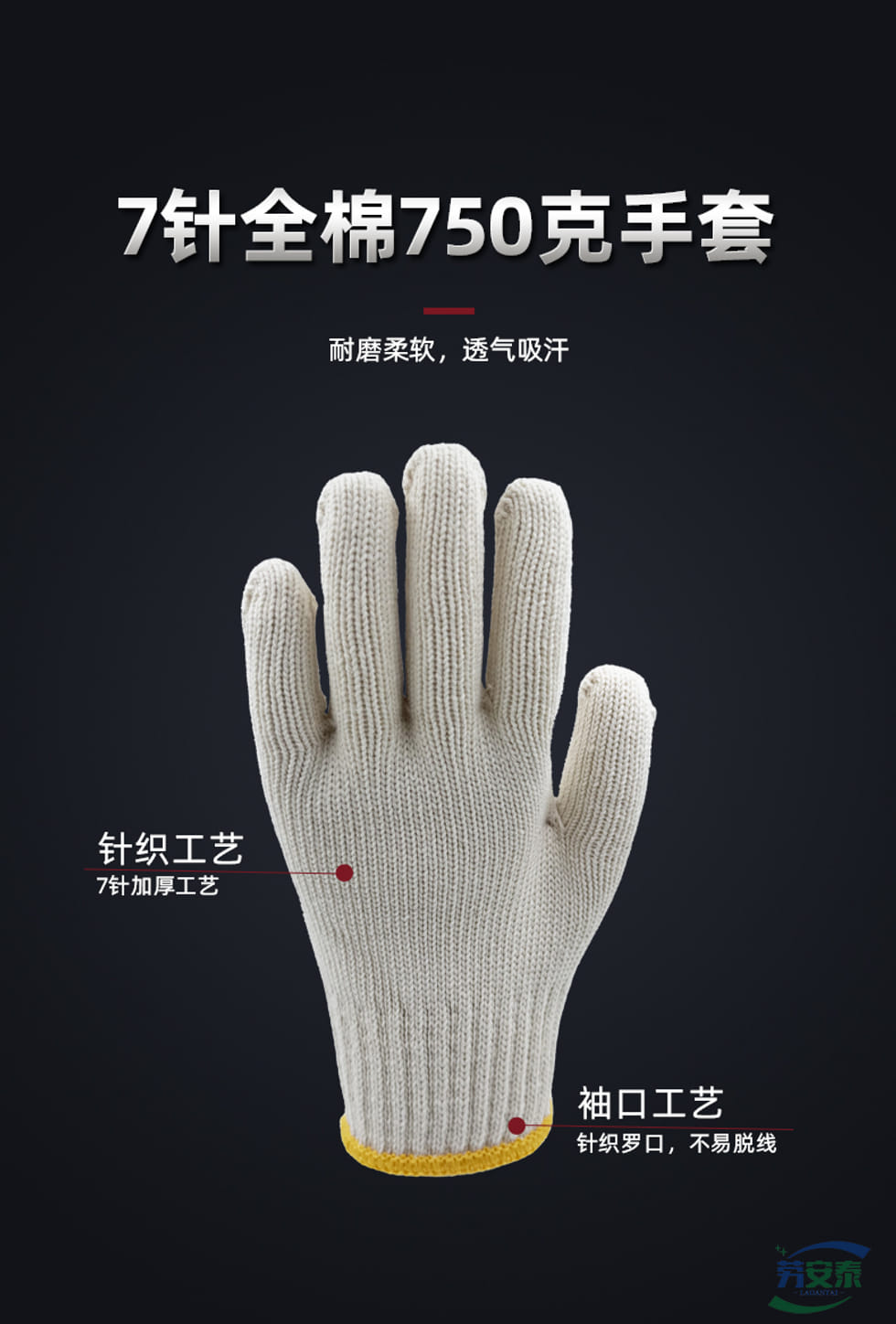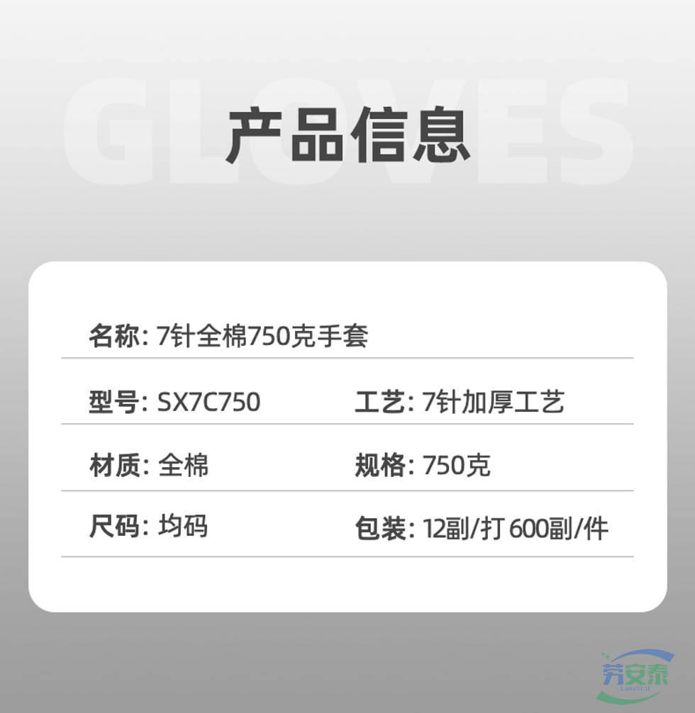 绥禧 7针全棉750克手套 加厚全棉手套