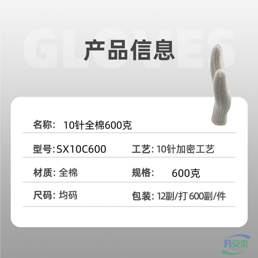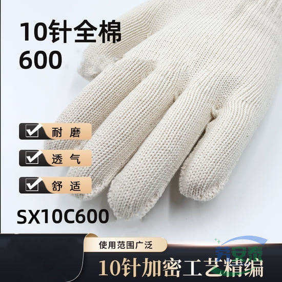绥禧 10针全棉600克多股细纱手套 透气 12双/打 1打