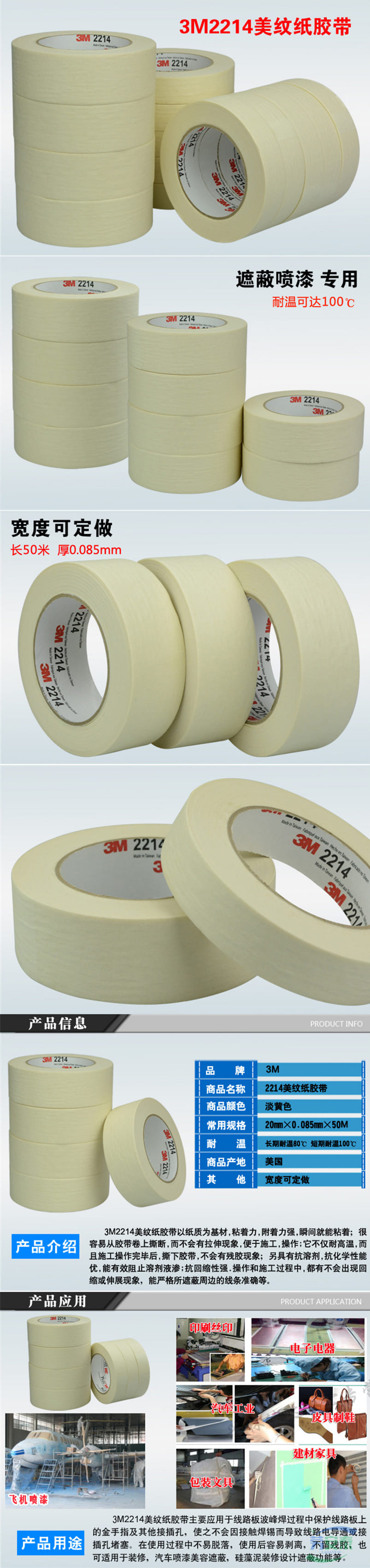 当前位置: 首页 / 工业胶粘 / 工业胶 / 3M 2214 美纹纸胶带 强粘附易撕断 耐高温无残胶抗溶剂超实用优选
