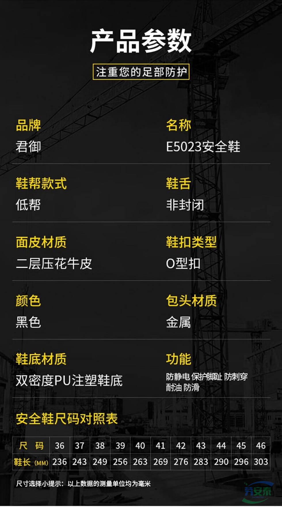 当前位置: 首页 / 个人防护 / 足部防护 / 君御E5023防砸防刺穿安全鞋防静电防滑耐油安全鞋加宽钢包头不夹脚 人体工学设计 工业劳保必备