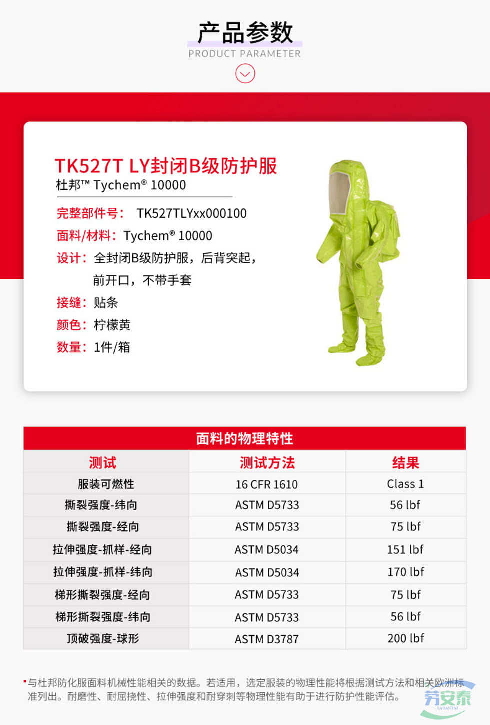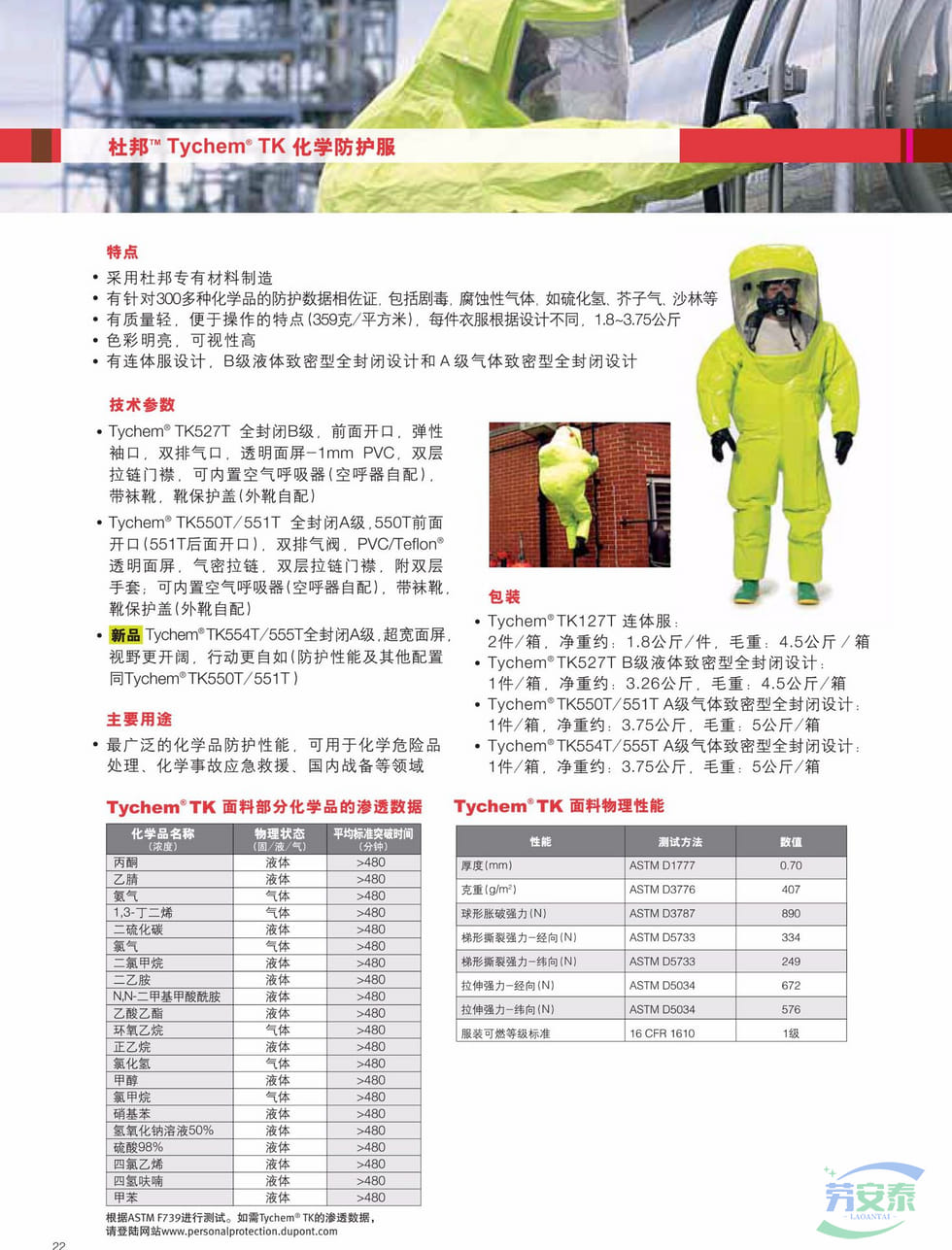 当前位置: 首页 / 个人防护 / 身体防护 / 杜邦™ Tychem® 10000 TK527T防化服全封闭B级防护服300+化学品防护数据支持