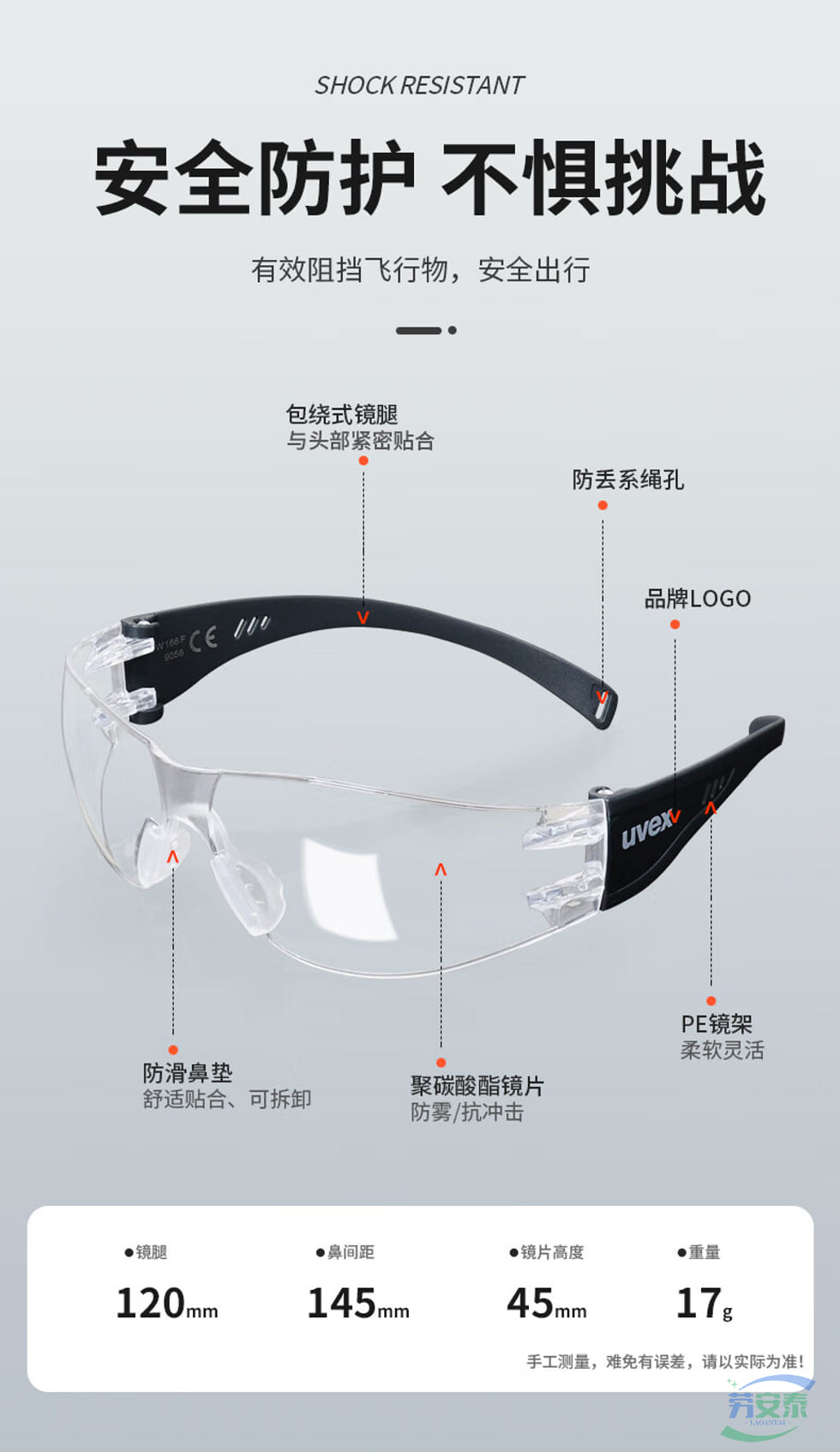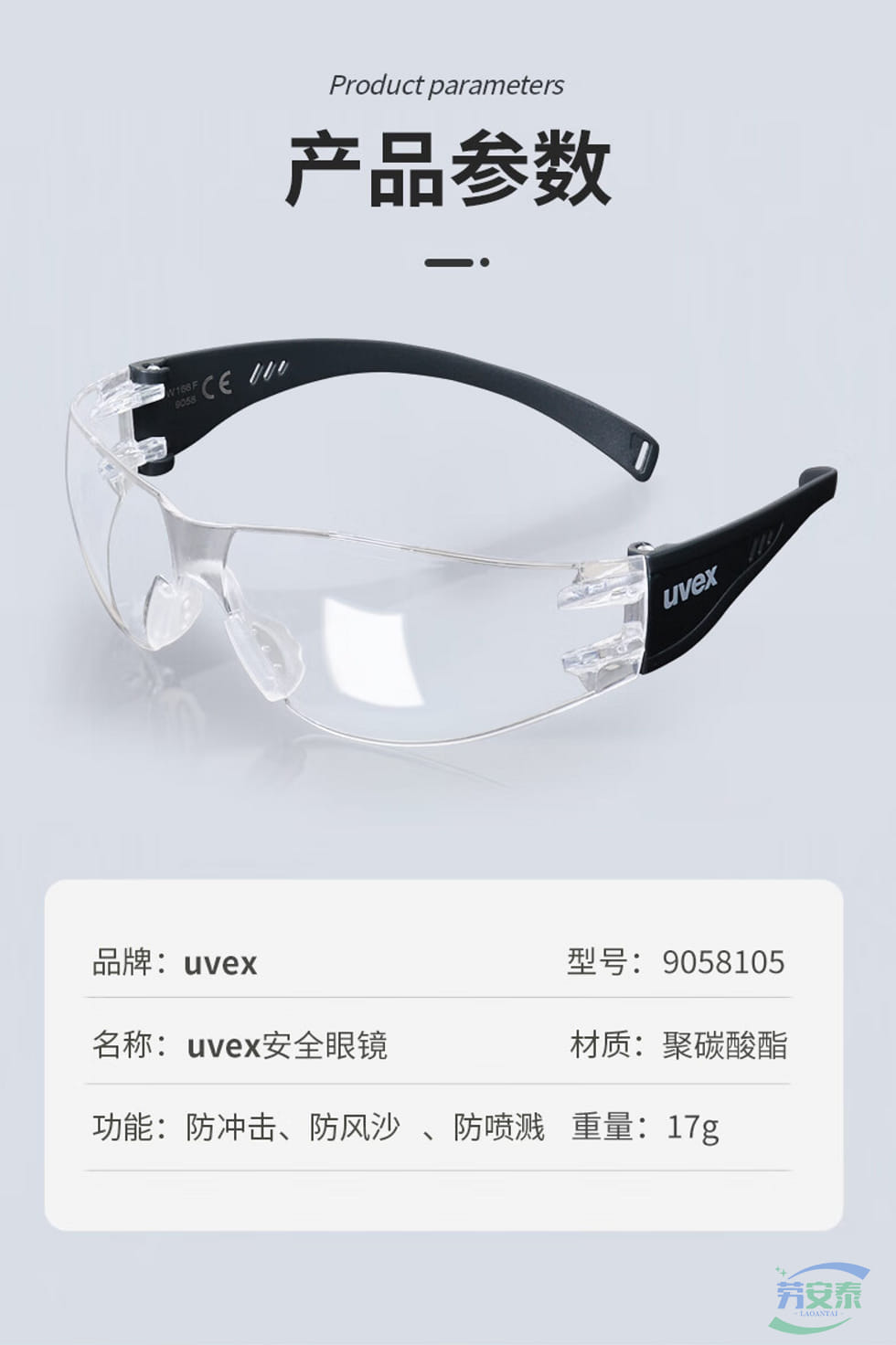 当前位置: 首页 / 个人防护 / 眼面防护 / 优唯斯9058105护目镜防冲击防紫外线 透明防雾镜片+灰色包绕镜腿 双面防雾涂层 舒适防滑鼻垫