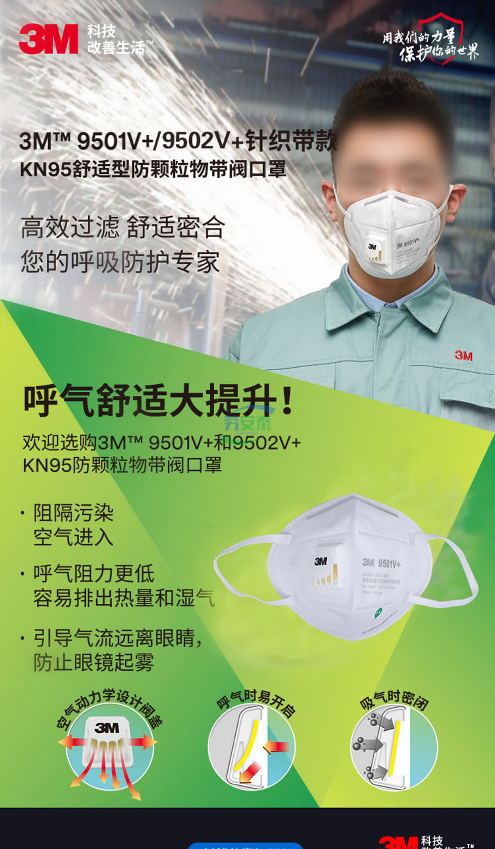 当前位置: 首页 / 个人防护 / 呼吸防护 / 3M 9501V+口罩耳戴式带阀自吸过滤式防颗粒物口罩 呼吸器KN95 环保包装