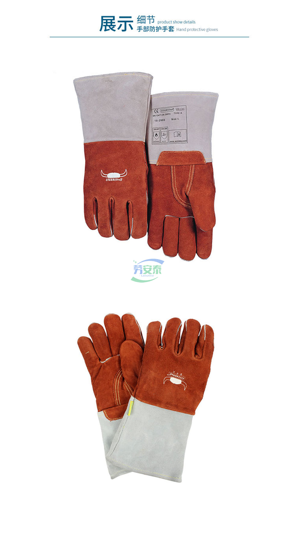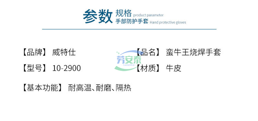 当前位置: 首页 / 个人防护 / 手部防护 / 威特仕10-2900焊工手套 250℃耐高温烧焊手套 CE认证 杜邦防火线+牛二层皮 焊接工业专用