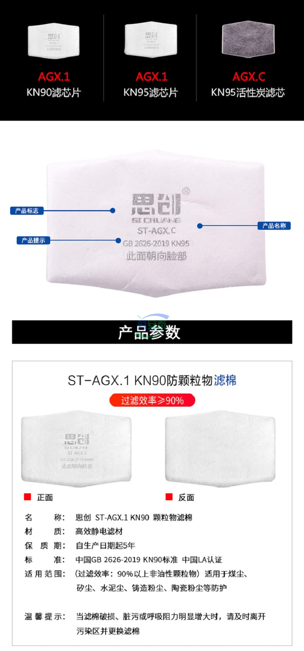 当前位置: 首页 / 个人防护 / 呼吸防护 / 【思创ST-AGX1过滤棉】KN90静电超细滤芯 国标GB2626-2019 煤尘水泥铸造陶瓷粉