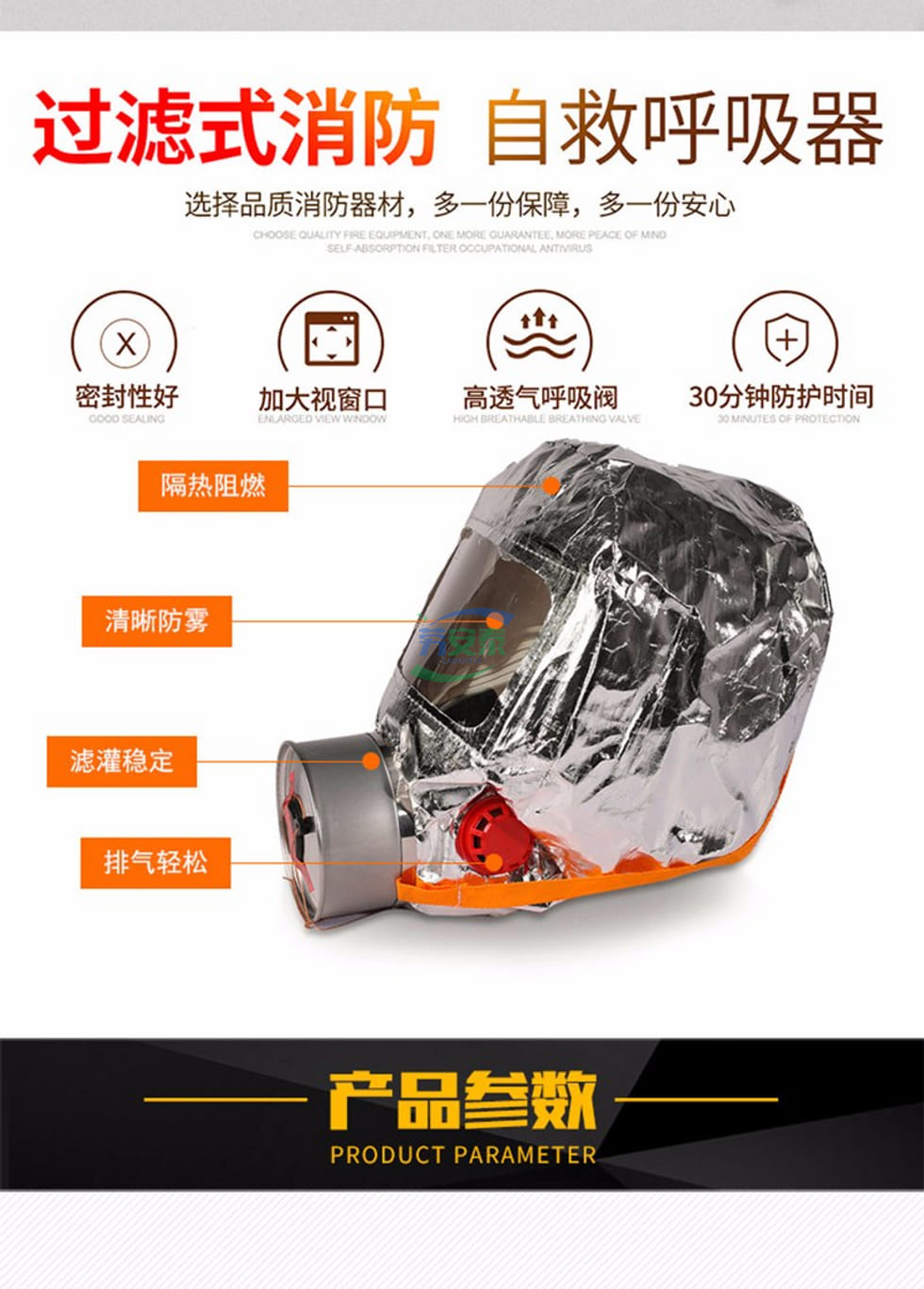 当前位置: 首页 / 个人防护 / 呼吸防护 / 柏达消防火灾逃生面具过滤式自救呼吸器30分钟防护