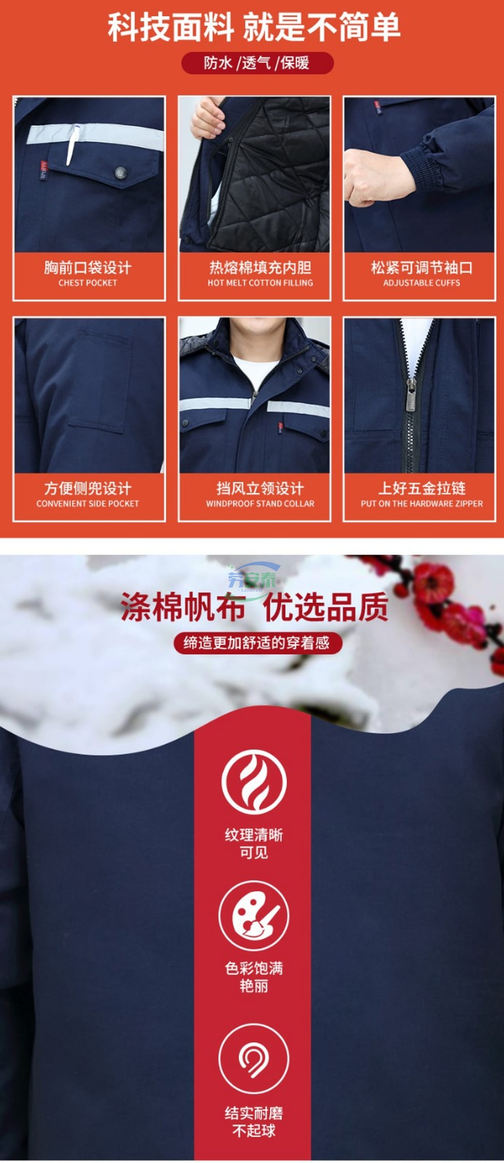 当前位置: 首页 / 个人防护 / 身体防护 / 君御JY-M1401工作服秋冬涤棉加厚反光条棉服工作服-多颜色可选