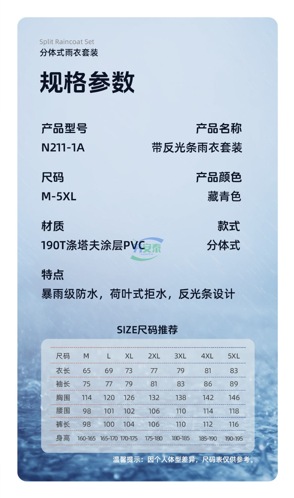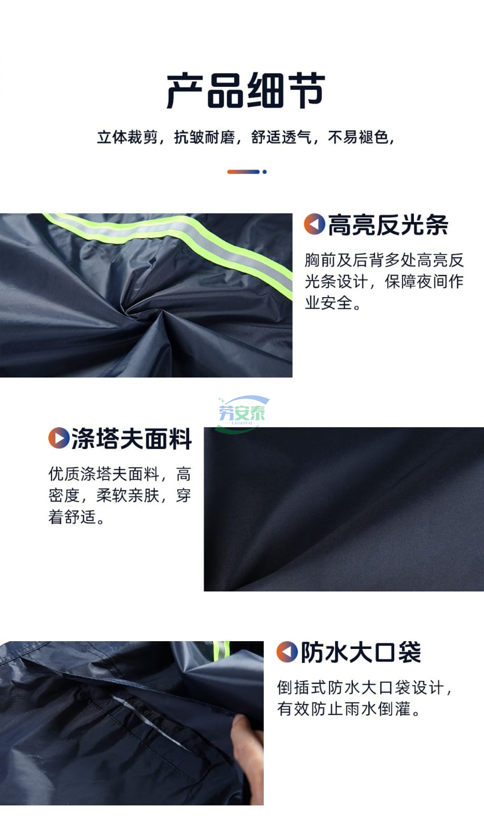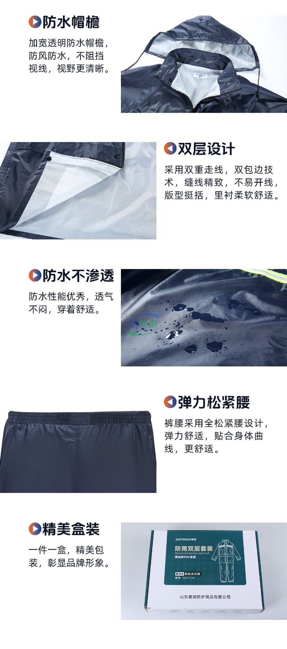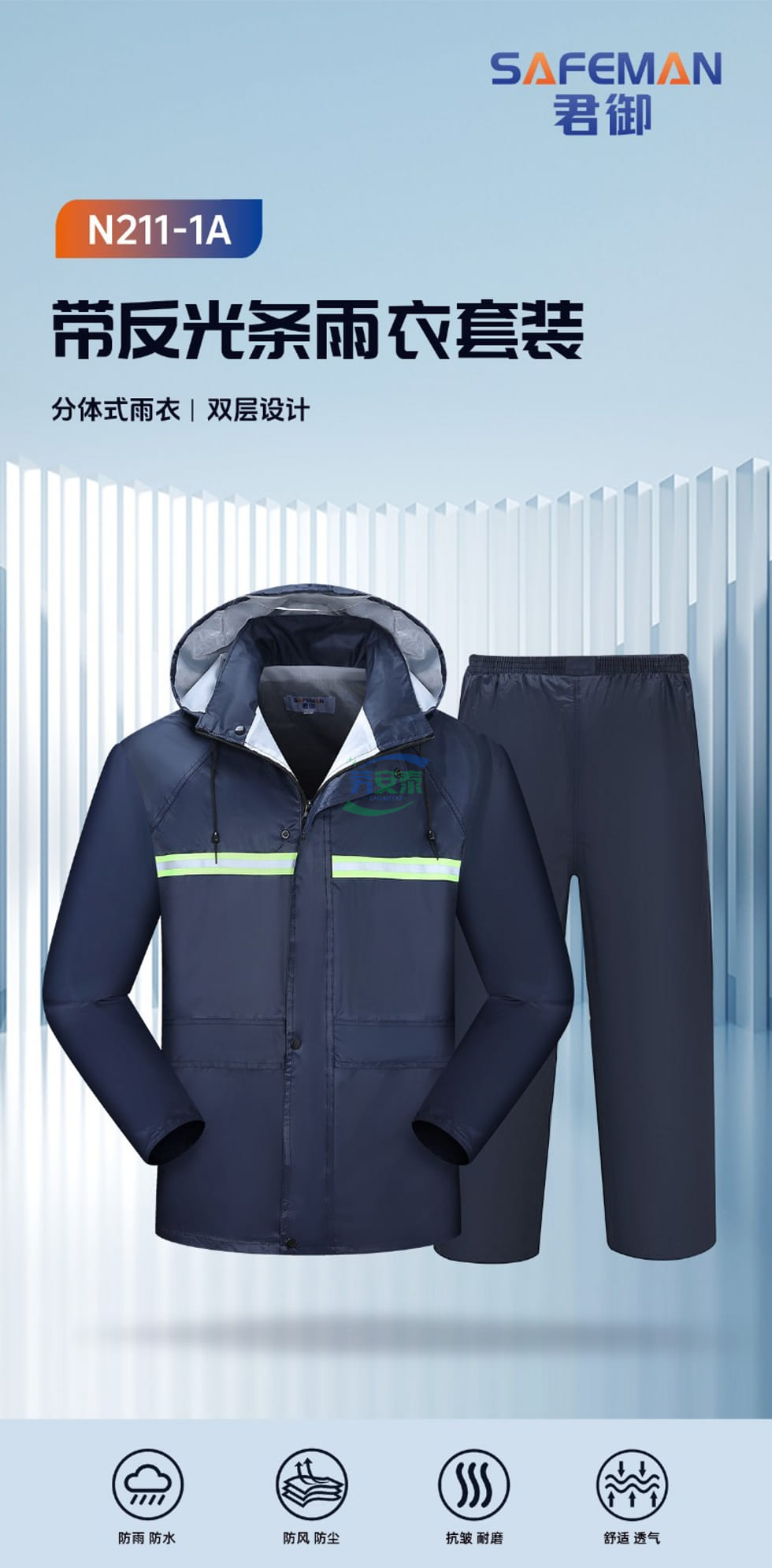 当前位置: 首页 / 个人防护 / 身体防护 / 君御 N211 - 1A 带反光条雨衣套装防渗漏双层结构