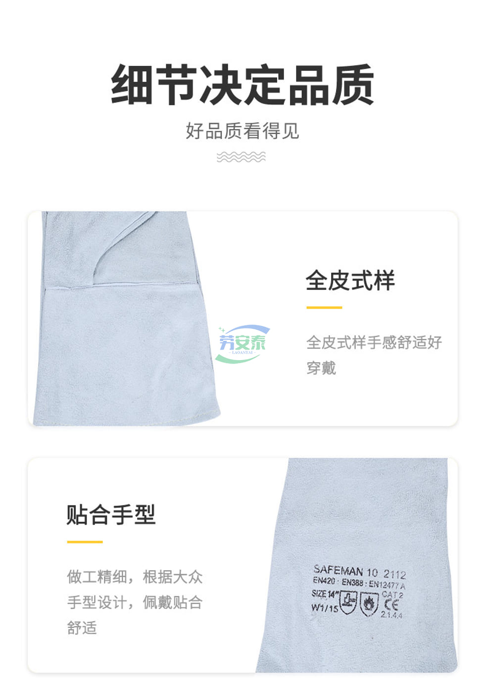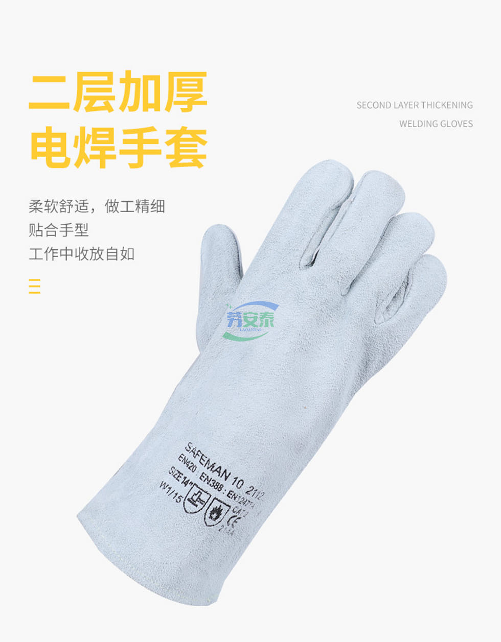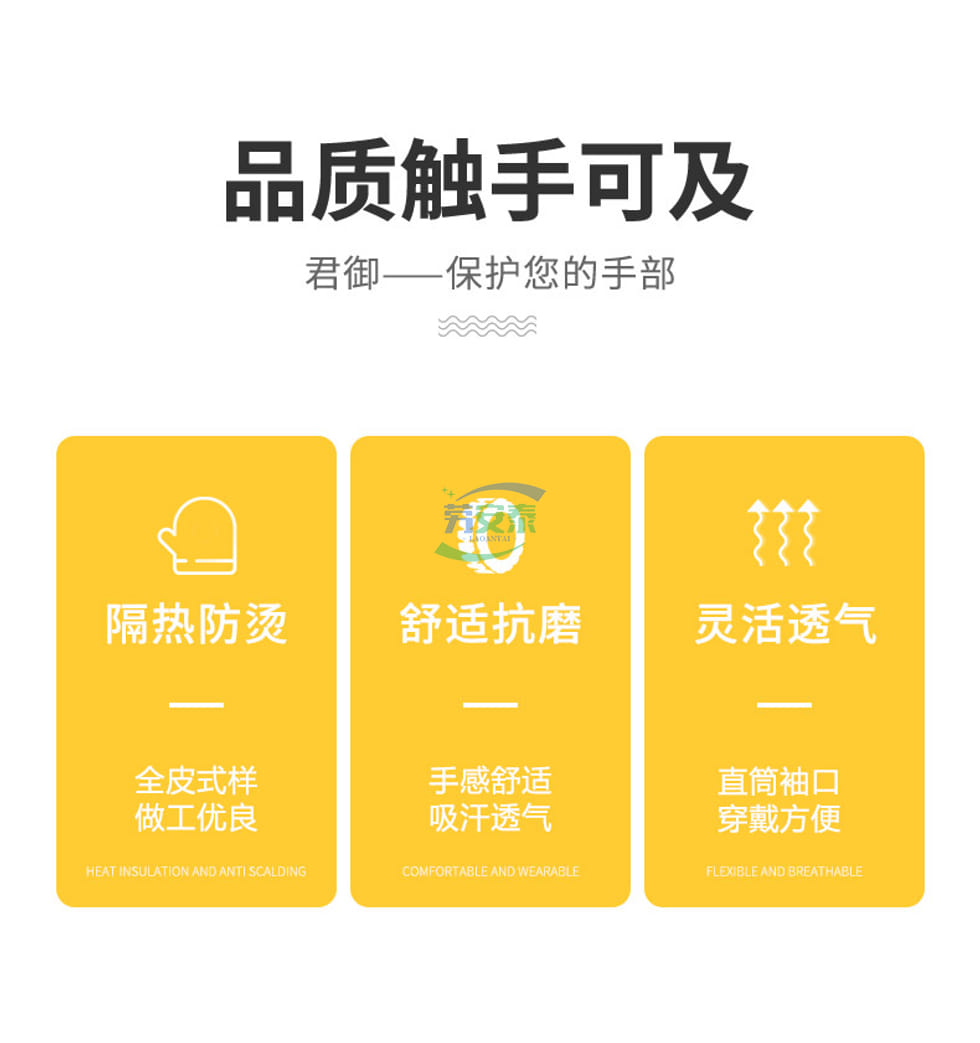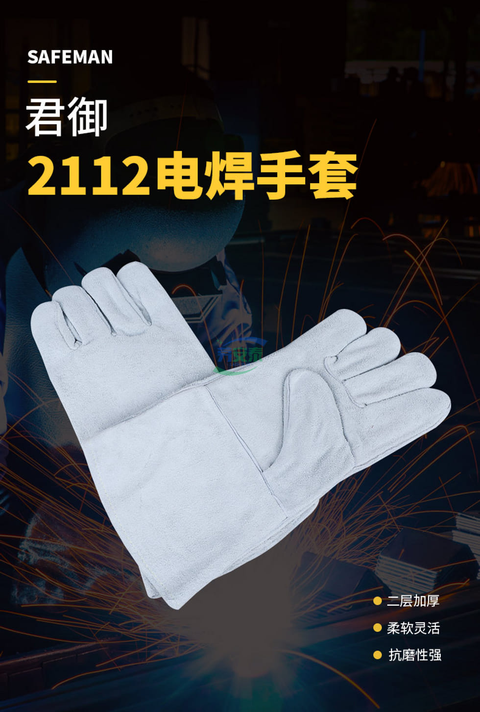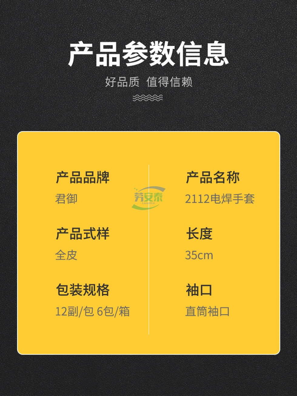 当前位置: 首页 / 个人防护 / 手部防护 / 君御2112二层加厚电焊手套 35CM防火线 牛二层AB级颈皮 阻燃抗热100℃/15秒