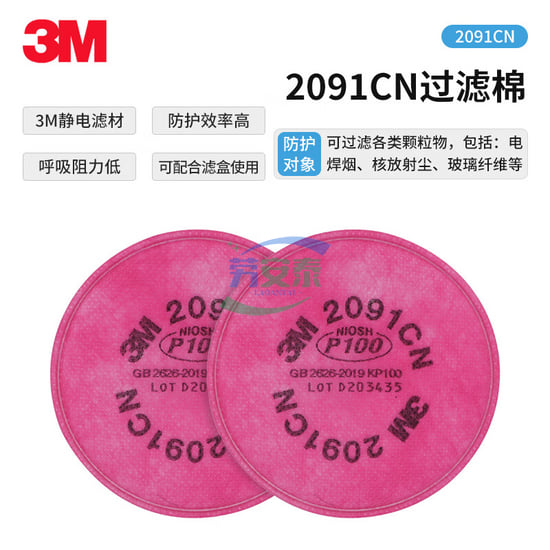 当前位置: 首页 / 个人防护 / 呼吸防护 / 3M 2091CN P100滤芯过滤棉 电焊烟 核放射尘 玻璃纤维高效过滤