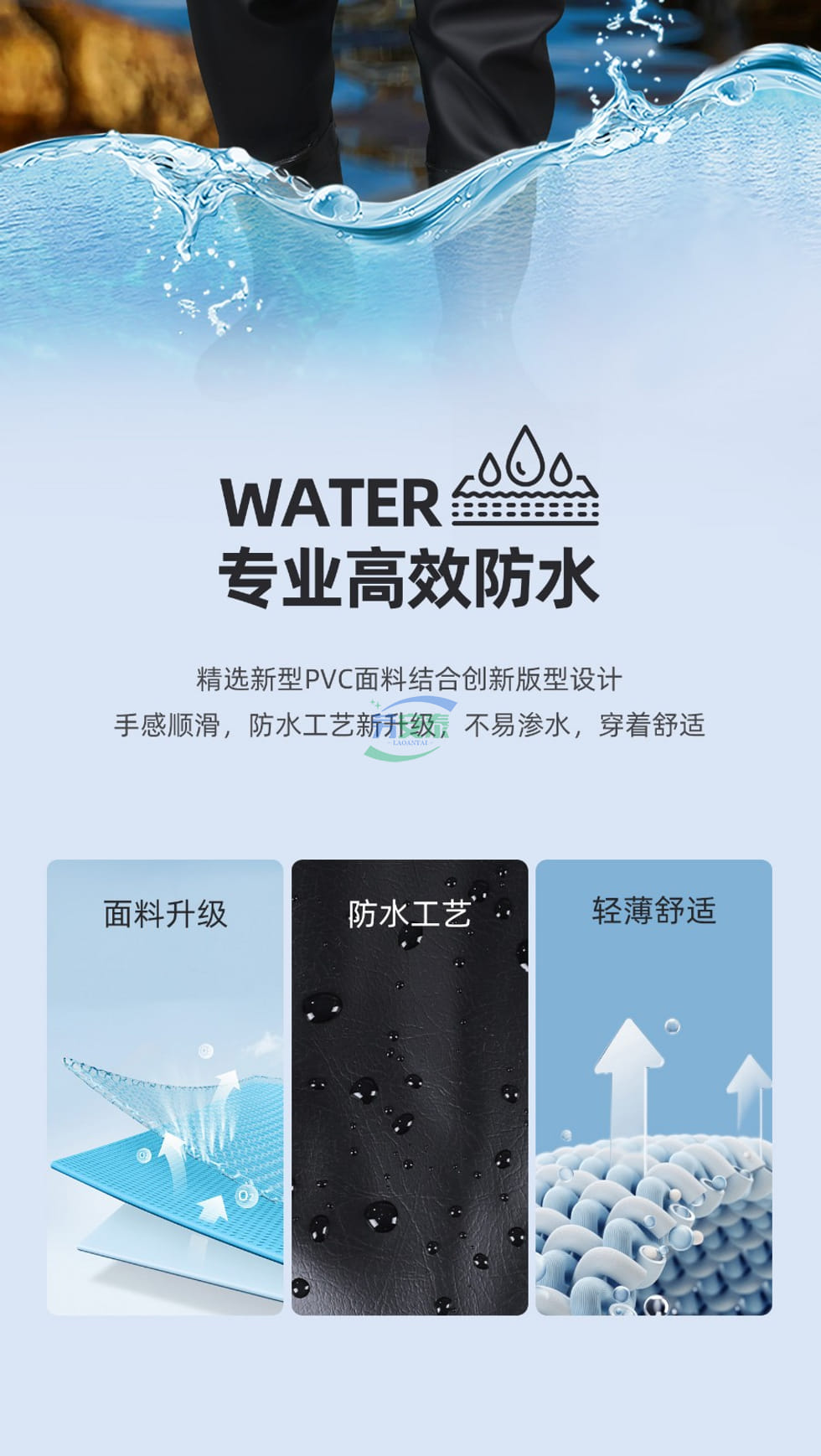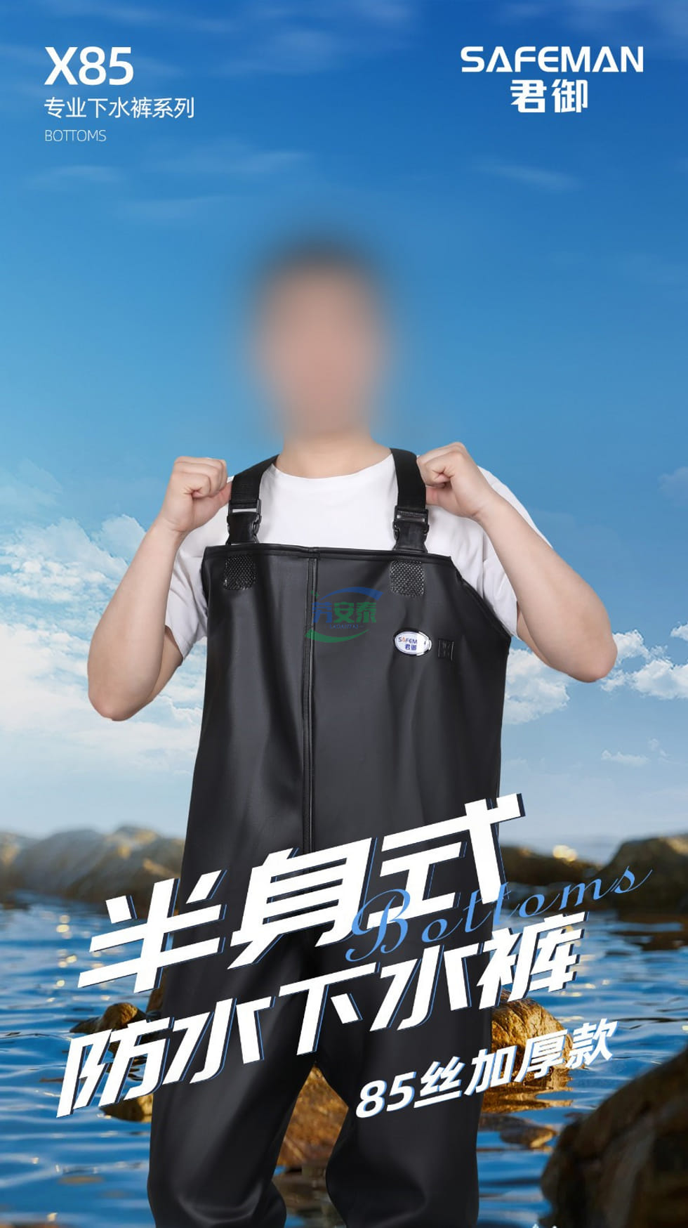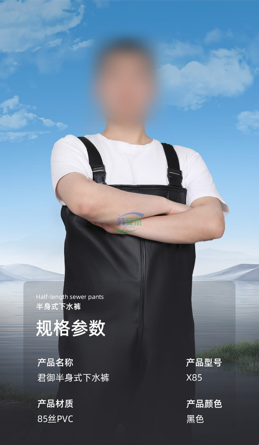 当前位置: 首页 / 个人防护 / 身体防护 / 君御X85加厚PVC防水下水裤 85丝高密度牛皮纹半身款 舒适针织内里+防滑牛津底 钓鱼涉水装备