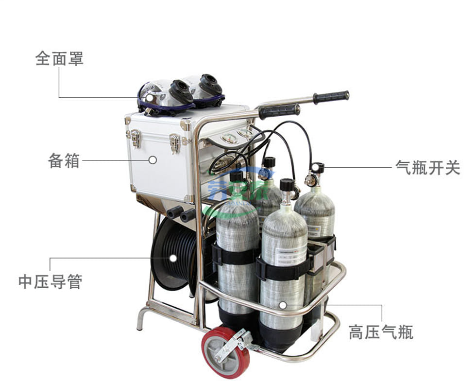 当前位置: 首页 / 个人防护 / 呼吸防护 / 邑固长管呼吸器HKC/30mpa移动供气源车载式空气呼吸器长管呼吸器4瓶 9L炭纤维瓶