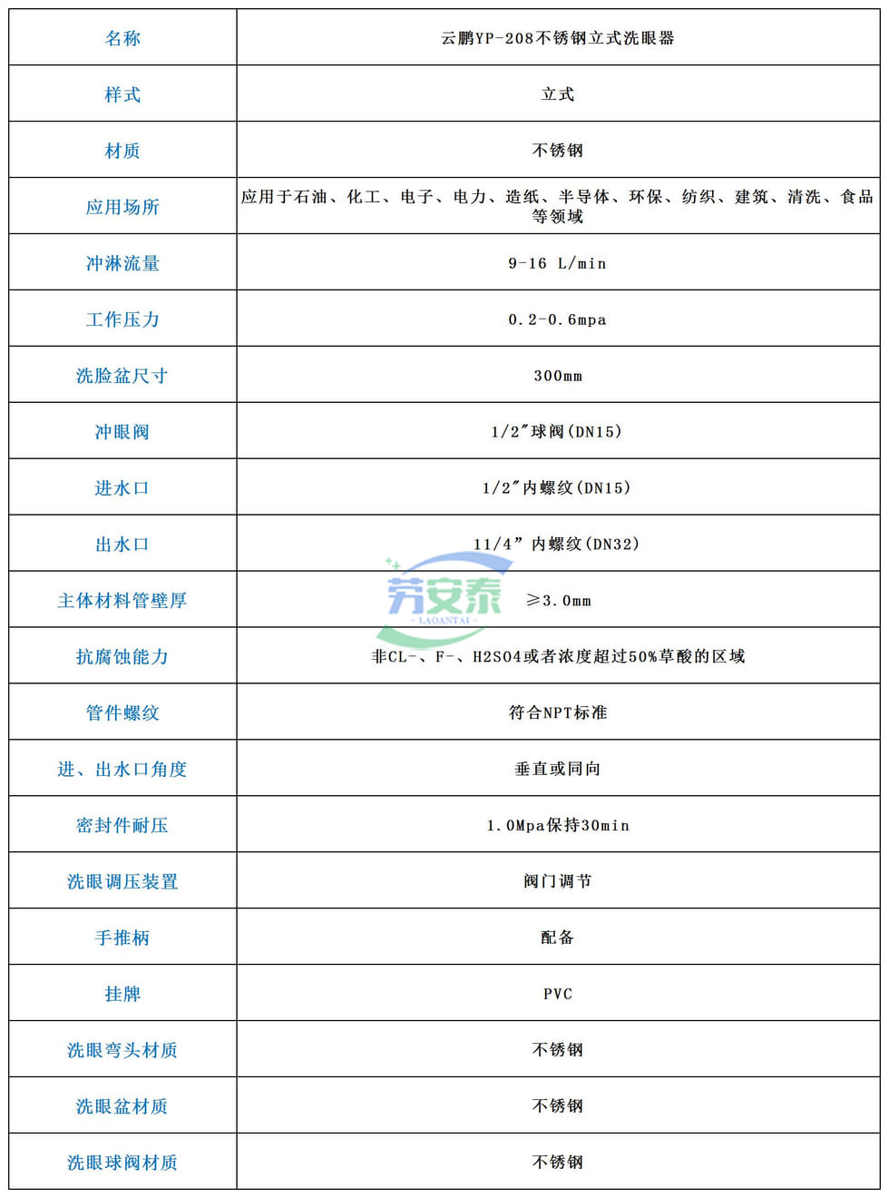 当前位置: 首页 / 个人防护 / 眼面防护 / 云鹏YP-208立式洗眼器304不锈钢防腐蚀 9-16L/分可调流量 实验室工厂应急设备