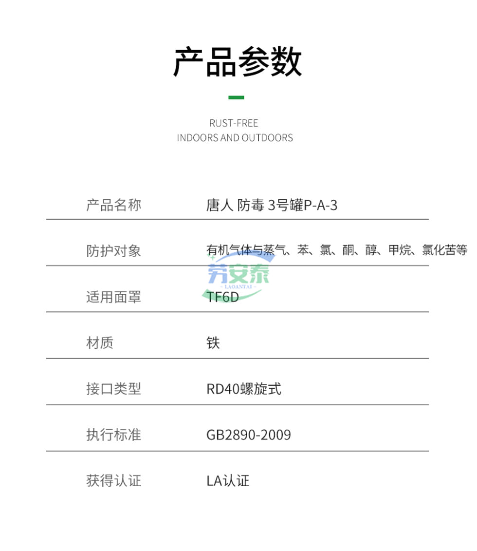 当前位置: 首页 / 个人防护 / 呼吸防护 / 唐人 A3KP100 3L号中罐(原Z-A-P3-3)防有机气体及蒸气