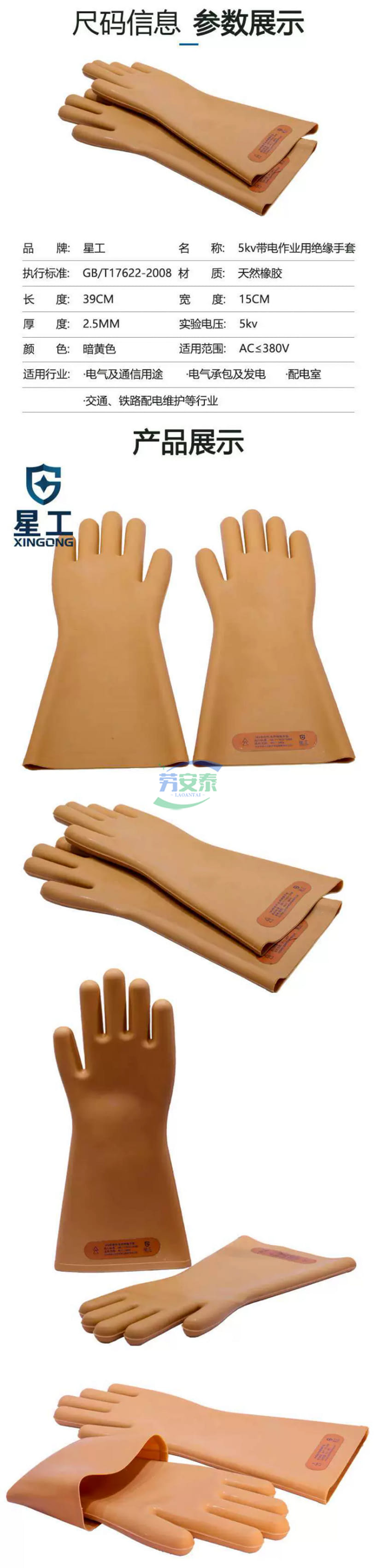 当前位置: 首页 / 个人防护 / 手部防护 / 星工5kv橡胶绝缘手套电力电工作业高压防触电安全防护