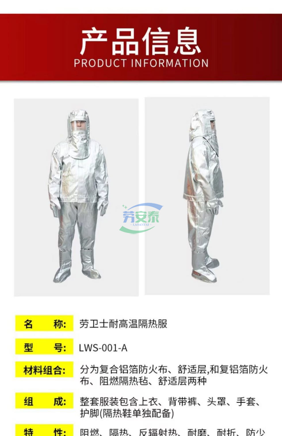 当前位置: 首页 / 个人防护 / 身体防护 / 劳卫士LWS-001-A铝箔隔热服700-1000℃ 分体设计+隔热靴 冶金铸造炼钢防护套装