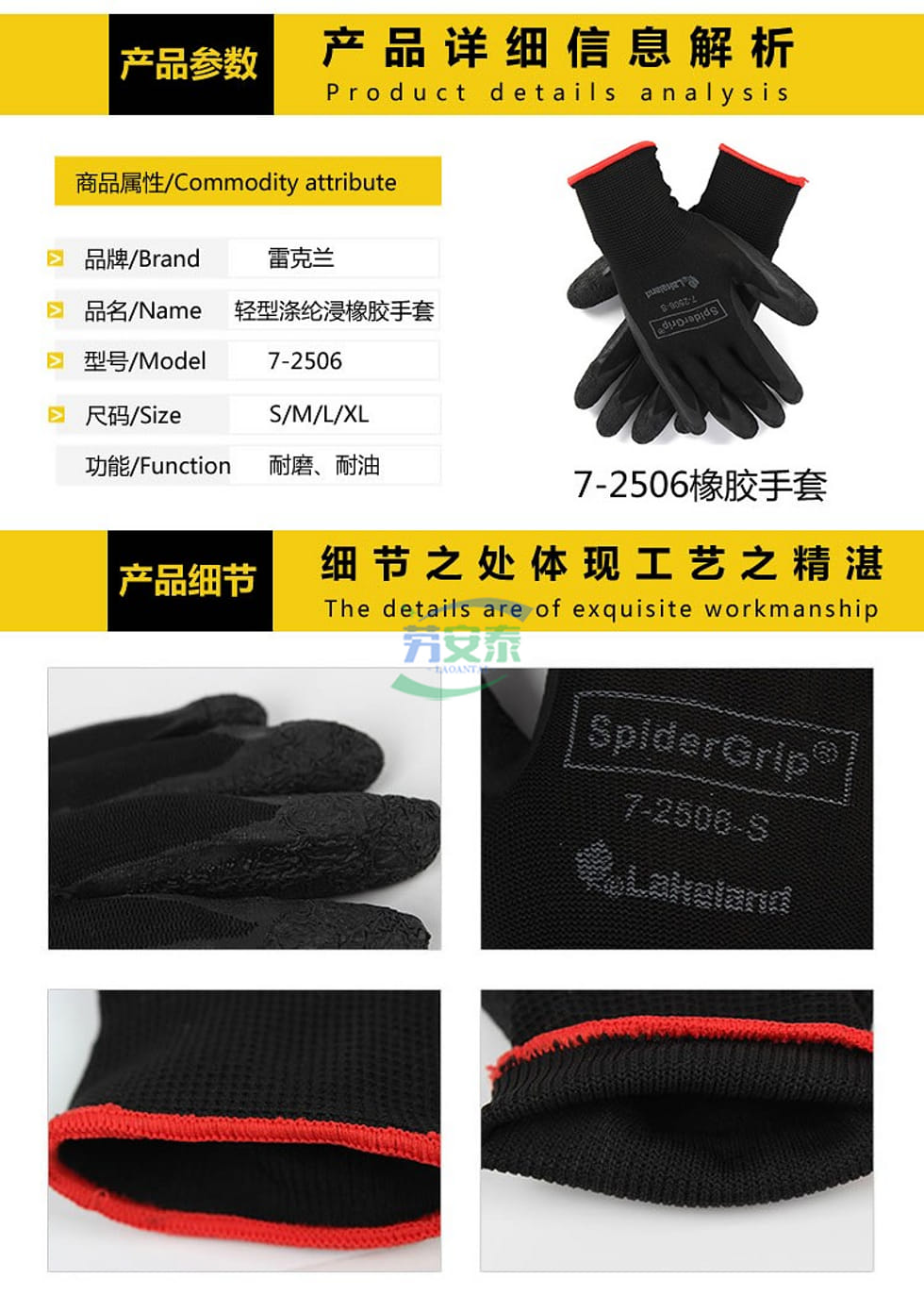 当前位置: 首页 / 个人防护 / 手部防护 / 雷克兰7-2506 SpiderGrip橡胶手套 防滑浸橡胶粗糙纹理 防液体手掌+透气手背