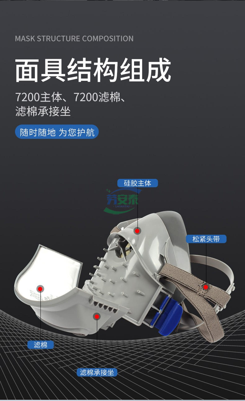 可配7200-1 KN95过滤棉使用 可加配活性炭滤材7200-2,吸附粉尘中的微量有毒气体