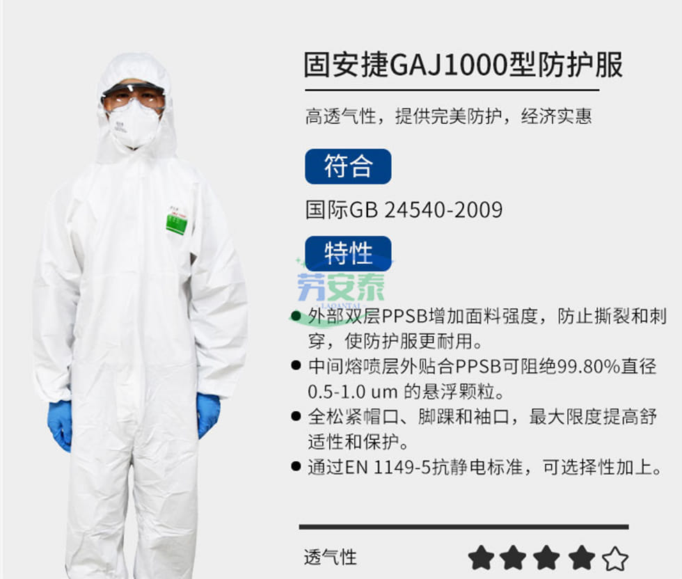 当前位置: 首页 / 个人防护 / 身体防护 / 固安捷GAJ1000连体防化服防护服 高质微孔膜+50g纺粘布 实验室工业用