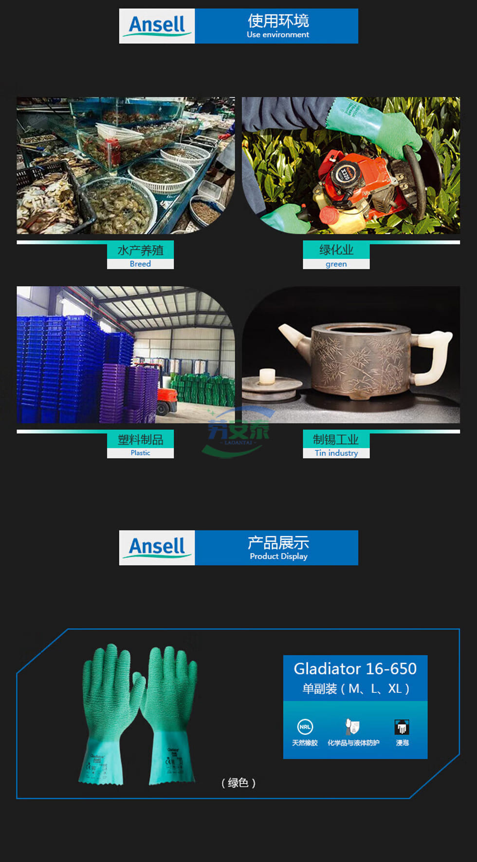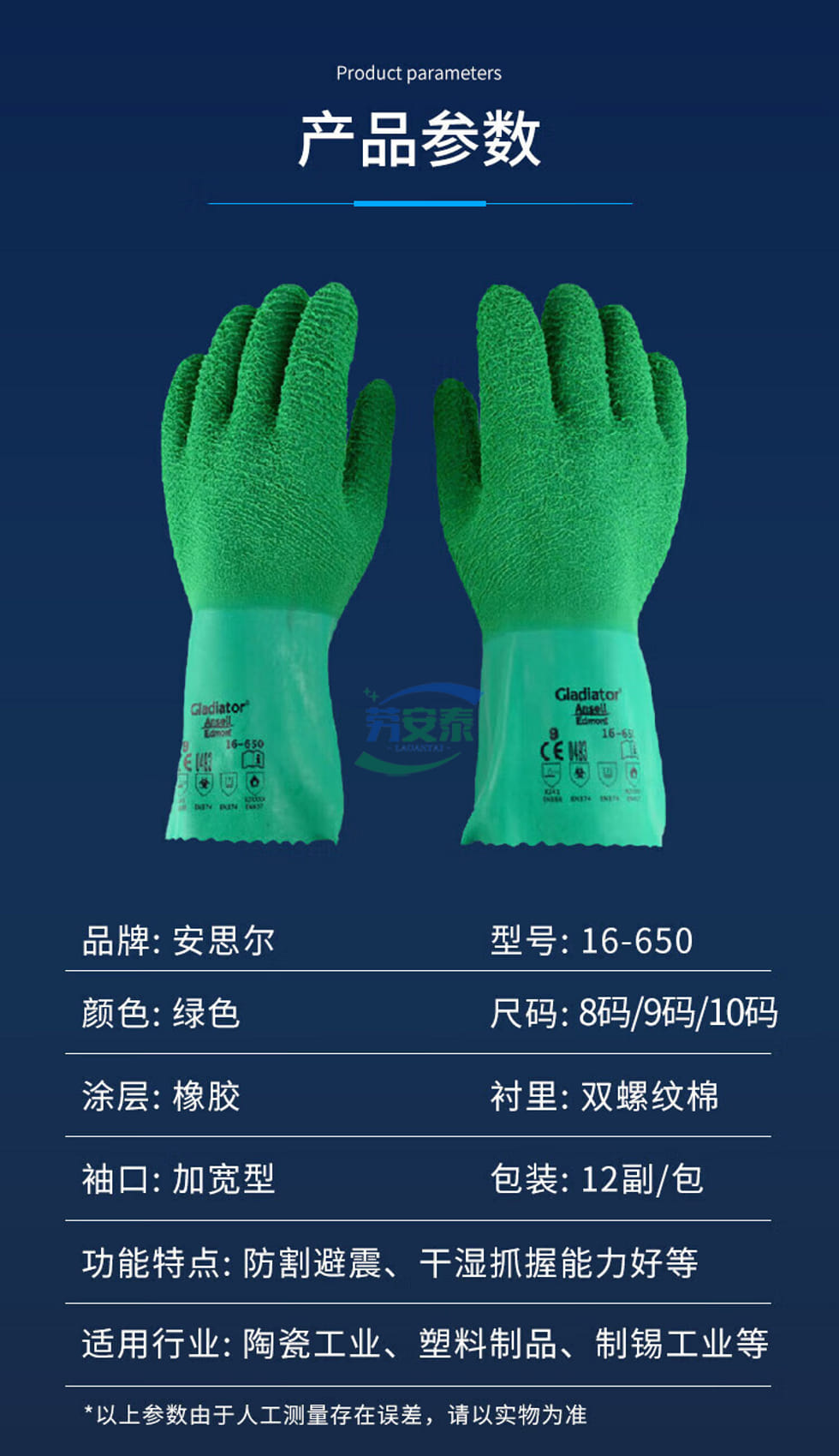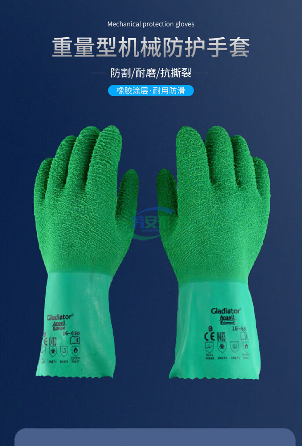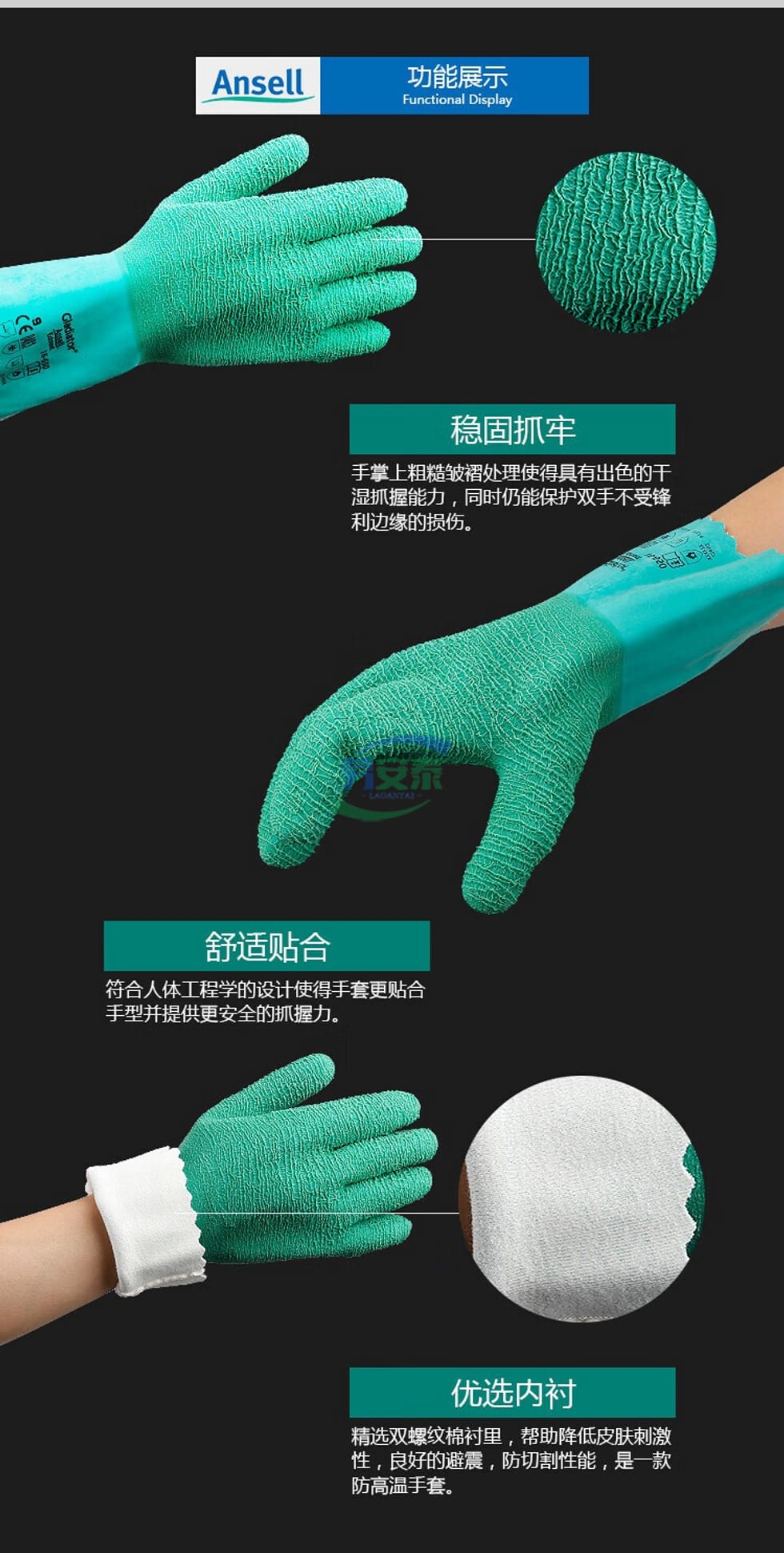 当前位置: 首页 / 个人防护 / 手部防护 / 安思尔16-650 Gladiator绿色防化手套防化耐高温150℃ 隔热手套